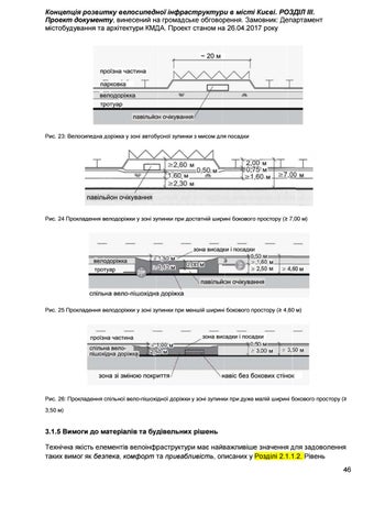 3.1.5 Вимоги до матеріалів та будівельних рішень Технічна якість елементів велоінфраструктури має найважливіше значення для задоволення таких вимог як безпека, комфорт та привабливість, описаних у Розділі 2.1.1.2. Рівень 46