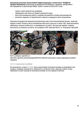 Фото з ресурсу: vgorode.ua http://kiev.vgorode.ua/news/sobytyia/299144-vstrechai-velo-kopov-v-kyeve-zapustyly-horodskoivelopatrul 3.2.1.2 з медичними службами Як зазначалось у пункті 1.1.1.2., їзда на велосипеді позитивно впливає на емоційний стан людини: покращує самопочуття, впевненість у власних силах, зменшує стреси, втому, проблеми зі сном тощо [9] та позитивно впливає на стан здоров’я загалом.