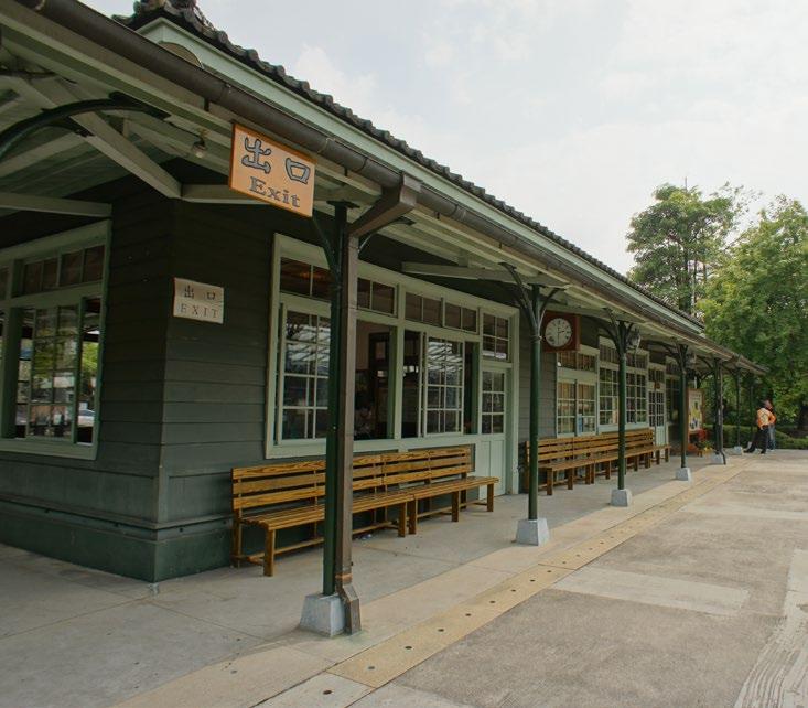 - 車 站建築全部以阿 里 山特有紅檜 建材。