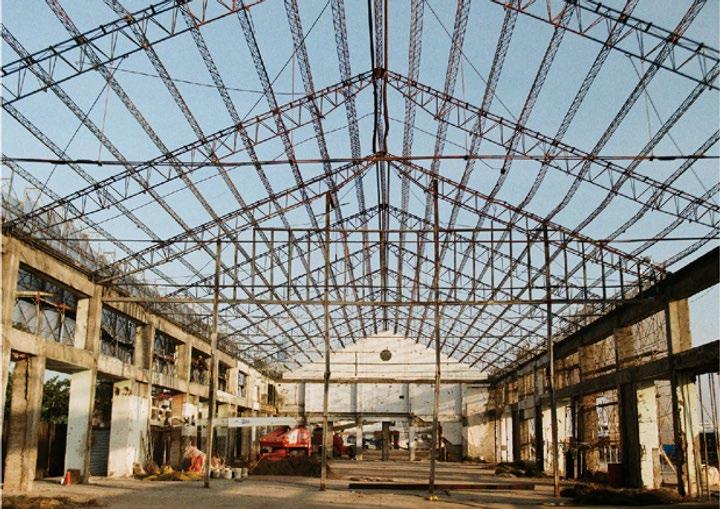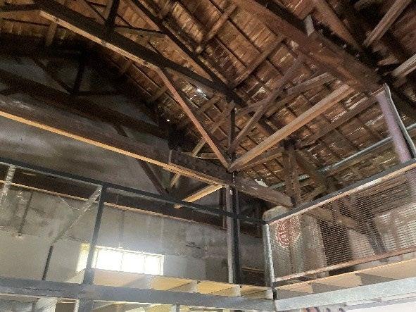 -靠東側的兩棟倉庫具有特殊M字型的屋頂,利用木桁架撐起倉庫空間需 要的大跨距空間 。