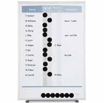 Keep track of your employees itinerary with this durable magnetic in/out board. The smooth writing surface is perfect for notations and the magnetic dots quickly identify who is in the office and who is not.