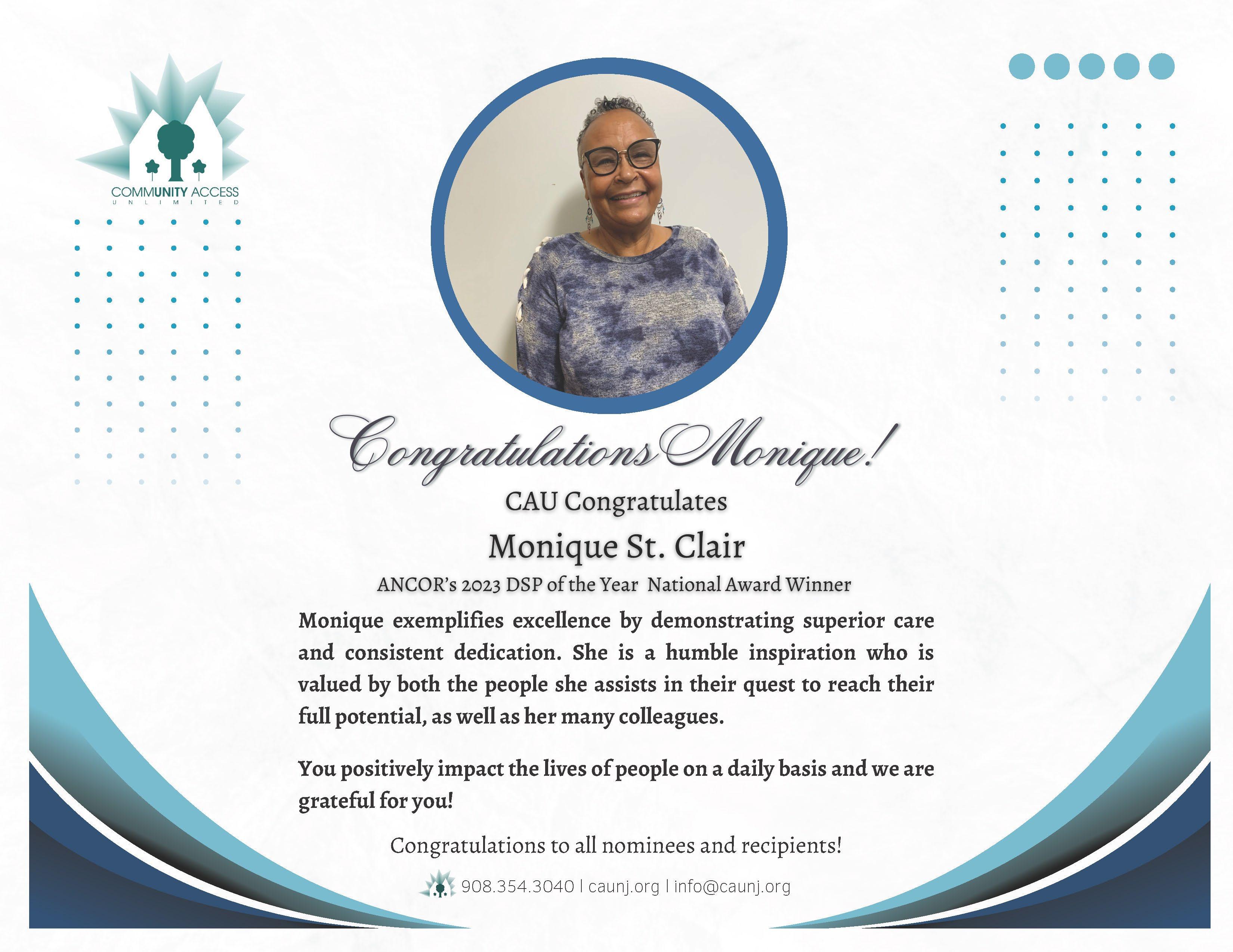 Congratulations on being named the 2023 DSP of the Year, Monique! We were in awe reading about you, and are grateful to have you as a stellar example of the important work direct support professionals do each and every day.