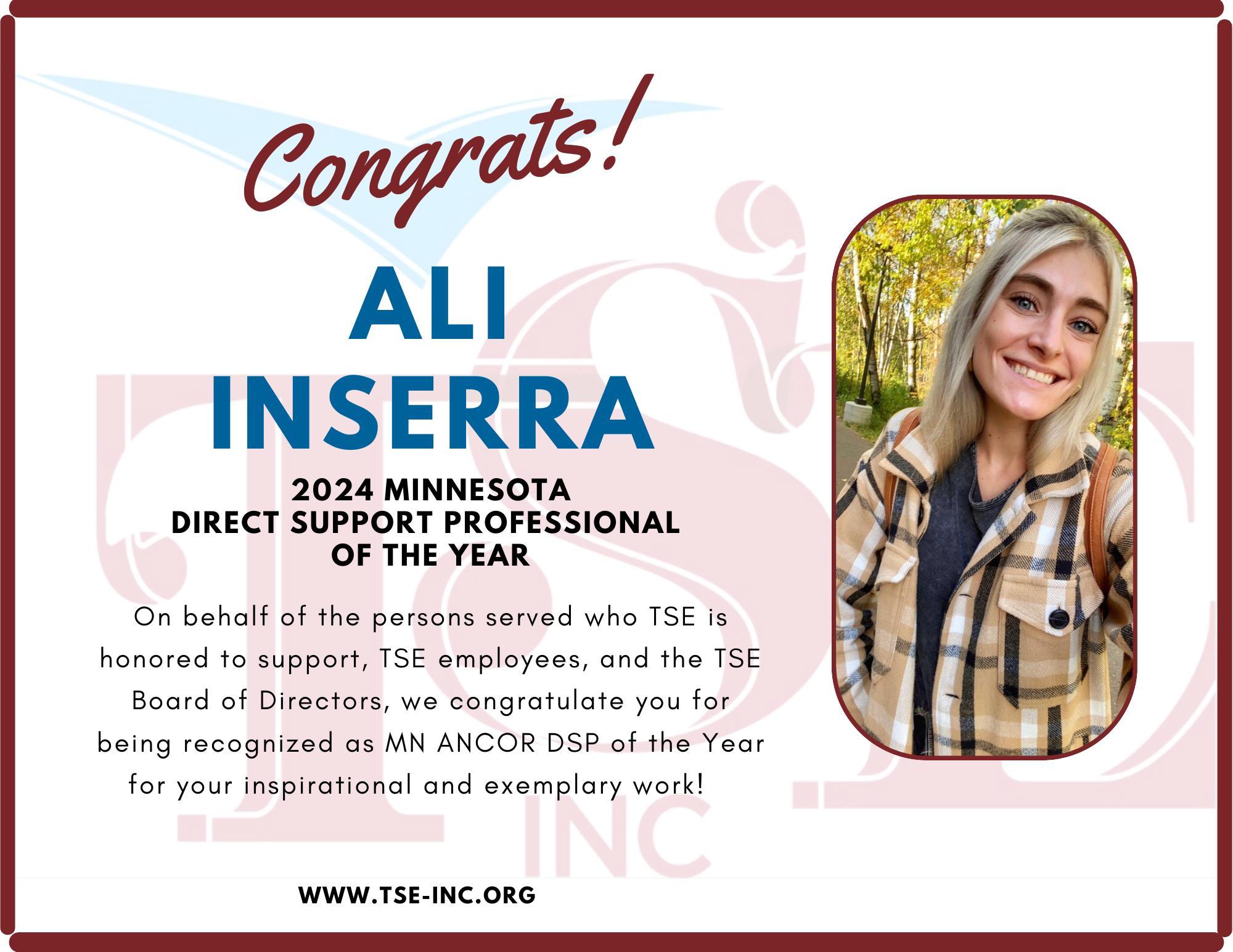 Sarah is one of the most humble, compassionate, and truly wholehearted DSPs. Sarah has demonstrated outstandingperson-centeredness in supporting two siblingswho have been living with Sarah and her family for more than 14 years. Sarah has helped themlive their dreams in so many ways.