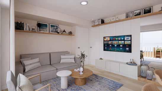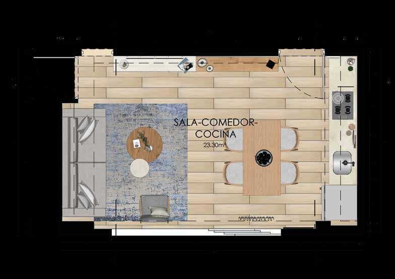 Se trata de un mini departamento frente al mar con un diseño boho nórdico con colores claros y ambientes que responden a lo requerido por el cliente.