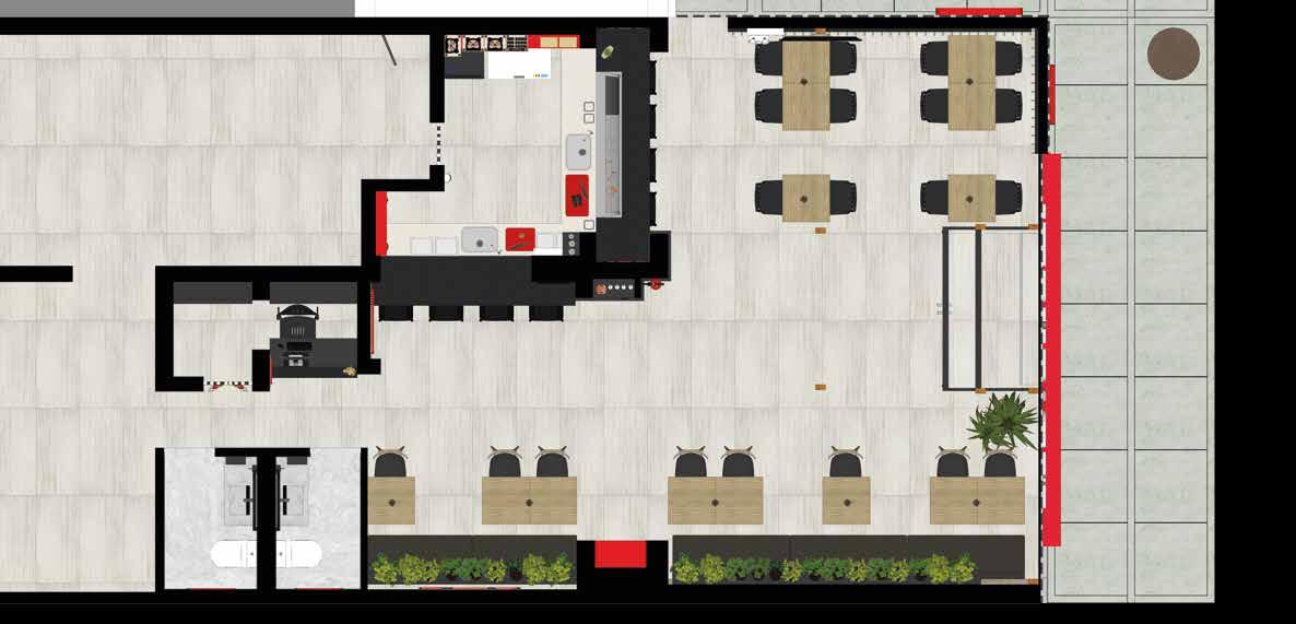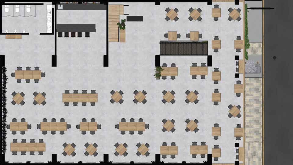 Diseño de primer y segundo piso de un restaurante campestre, este necesita una buena elección de materiales y distribución de mesas siendo flexible para diferentes actividades.