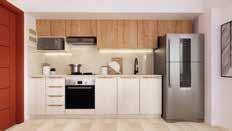 MUEBLE ALTO DE COCINA: Estructurado en melamina 18mm RH color Roble rustico marca VESTO con sistema de apertura de puertas con rebaje de 45° Iluminacion empotrada inferior LED de luz cálida 3000k