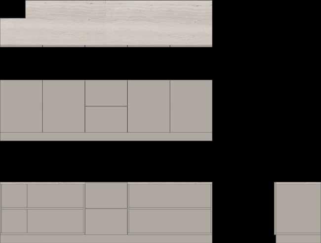Mueble bajo estructurado en melamina de 18mm color Taupe marca Pelikano con 02 cajones con sistema de apertura push, correderas de cierre lento, 04 puertas batientes con bisagras de cierre lento y sistema de apertura push Tablero superior de melamina 18mm color Tivoli marca Pelikano