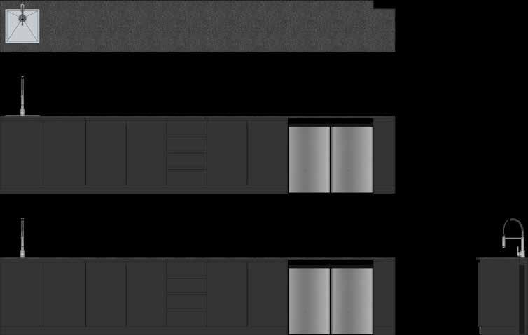 Mueble bajo de bar de melamina colo negro RH 18mm marca Pelikano con puertas cajones y repisas. Mesada de granito Negro Absoluto e:2cm con falsa de 2cm y poza de lavado empotrada y griferia al mueble.