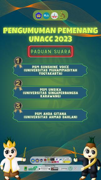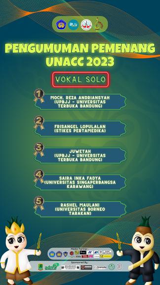 Desain ini dibuat untuk pengumuman pemenang lomba UNACC 2023 secaradaringdiInstagram.