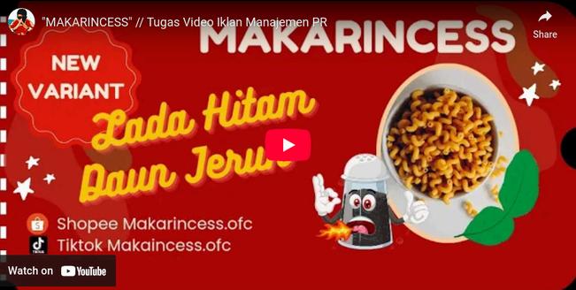 MakaroniIncess(MAKARINCESS)adalahsebuahbrandmakananringan fiksi yang dibuat bertujuan untuk memenuhi tugas video iklan mata kuliahManajemenPublicRelationssemester4.