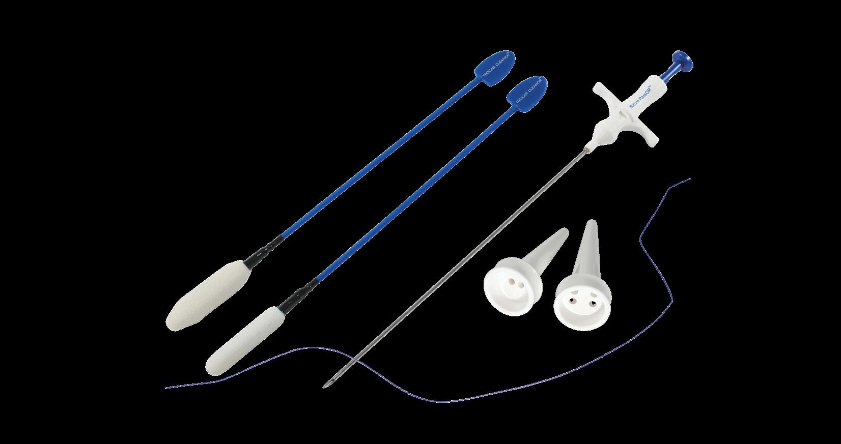 The Port ClosOR PRO™ is used to suture port and trocar sites following laparoscopic procedures. Its unique design allows for easy threading, making it suitable for various suturing techniques. Packaged with two trocar swabs, the Port ClosOR PRO™ also assists surgeons in removing any fluid and debris that may have accumulated within the trocar valves throughout the procedure.