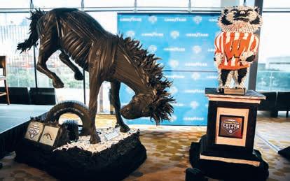 Conel fin de reconocer la dedicación, determinación y el esfuerzo realizados por la Universidad de Wisconsin y la Universidad de Michigan para llegar a la final del clásico Goodyear Cotton Bowl, the Goodyear Tire & Rubber Company realizó esculturas masivas de las mascotas de cada uno de los equipos utilizando más de 500 llantas.