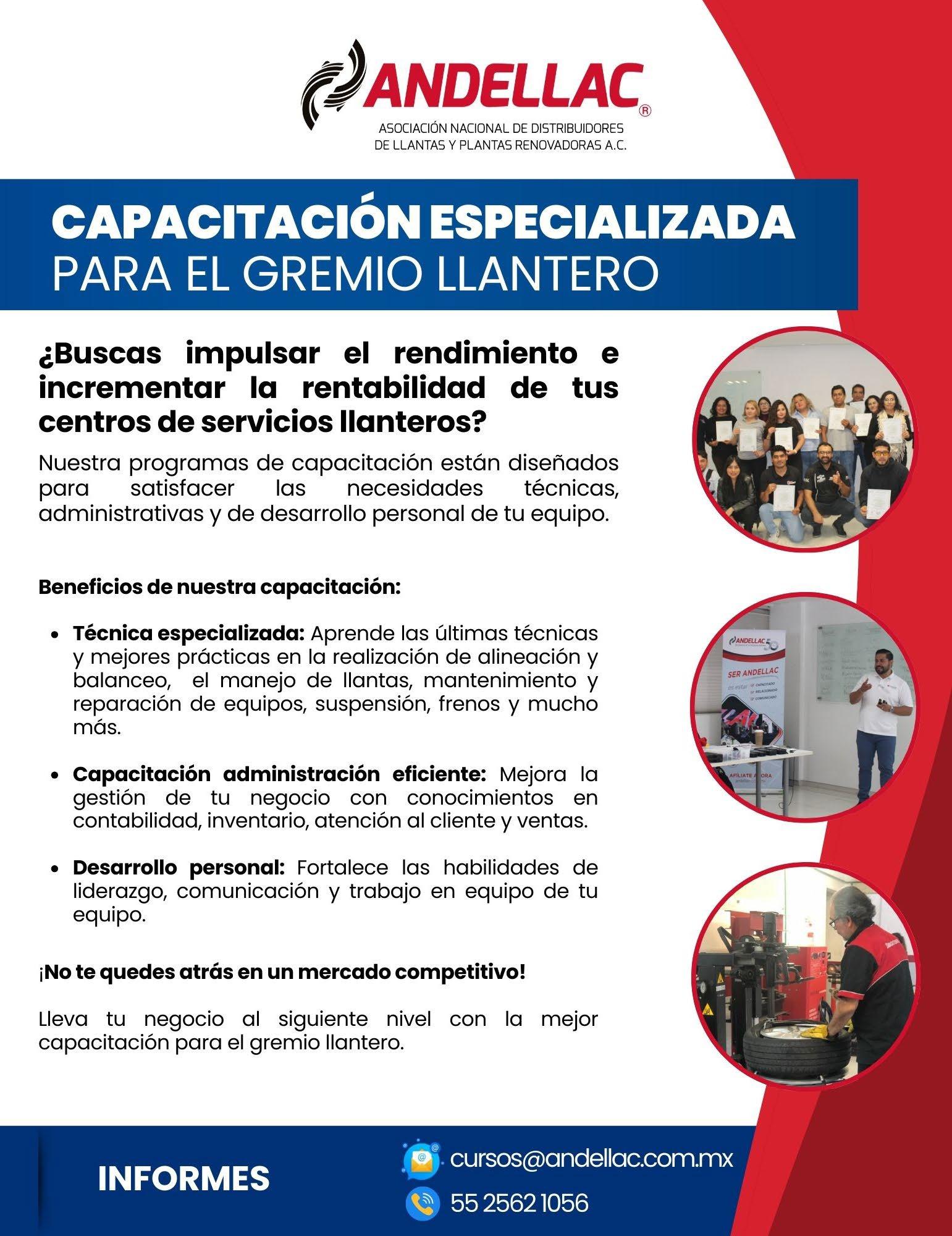 ANDELLAC es una publicación mensual de la Asociación Nacional de Distribuidores de Llantas y Plantas Renovadoras, A.C. Av. Insurgentes Sur No. 1524, Ofic. 303. Col. Crédito Constructor, Alcaldía Benito Juárez, C. P. 03940, Número de Reserva de Título de Derechos de Autor: 042006-071712491200-102 No. De Certificado de Licitud de Título: 3227 No. De Certificado de Licitud de Contenido: 2856. ANDELLAC investiga la seriedad de sus anunciantes, pero no se hace responsable por las ofertas realizadas por los mismos. El contenido de los artículos y notas periodísticas son responsabilidad de sus autores. Queda prohibidad la reproducción parcial o total por cualquier medio sin permiso por escrito del editor.