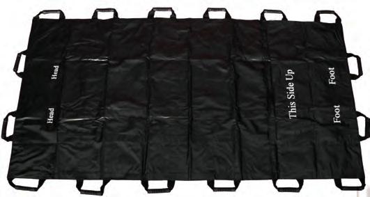 6 handles each side, and 2 handles each end. Anti-slip foot rest. Can accomodate LESS stretcher or backboard.