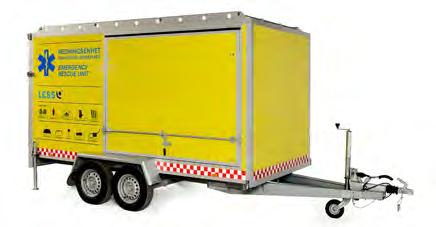 LESS® Emergency Rescue Unit is a trailer solution for mass casualty incidents and large evacuations. It is rigged with equipment to establish a casualty clearing station rapidly. Most units are tailor made for a certain level of preparedness according to a given risk assessment. Typical con- tent is shown above, and can equally be rigged in a container or onto a rescue vehicle.