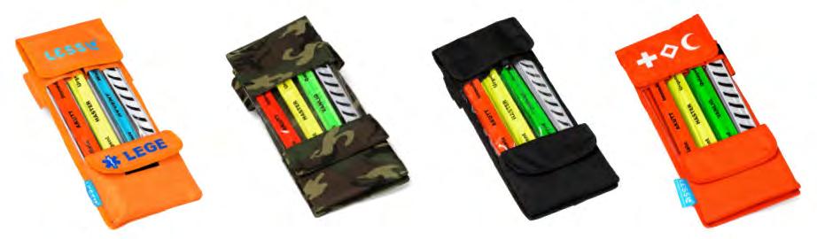 LESS® Triage Pocket is a functional bag that attaches with a strap around the waist. The pocket contains 10 reflective tapes of each four categories of red [IMMEDIATE], yellow [URGENT], green [DELAYED] and grey [no signs of life]. The reflective tapes are very effective and easy to use for identification of patient priority. The system is designed for first phase triage in major accidents, and works well together with all major triage algorithms.
