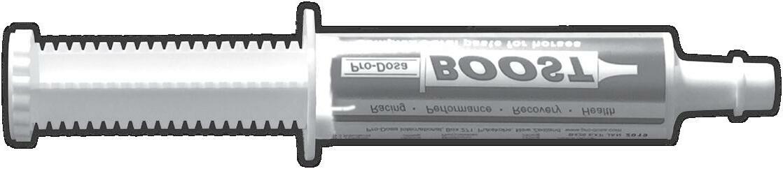 nutrition and the increased requirements horses have when they are under stress. Pro-Dosa BOOST provides a practical way to deliver essential nutrients to horses that may not be eating or drinking enough, at those times, to support normal metabolism, performance, recovery, and heath.