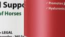 An advanced natural, safe and effective formula of hyaluronic acid, MSM and Vitamin C that supports joint health during intense activity in all horses.