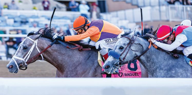 Even deep into his 20s, Candy Ride continues to be an allencompassing force, finishing ninth on the general sire list himself in 2025. Such enduring excellence was a commonality he shared with another stallion about eight miles away who also forced commercial breeders to reassess what they thought a pillar of the stud book was made of.