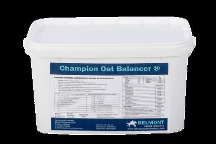 The Belmont Feeding Protocol includes rolled oats, our Champion Oat Balancer® (a patented FDA/USDA approved multivitamin, amino acid & mineral supplement), our Champion Roasted Flaxseed (a nutrient dense omega-3 wholefood) & adequate rations of hay to provide optimal nutritional support for equines.