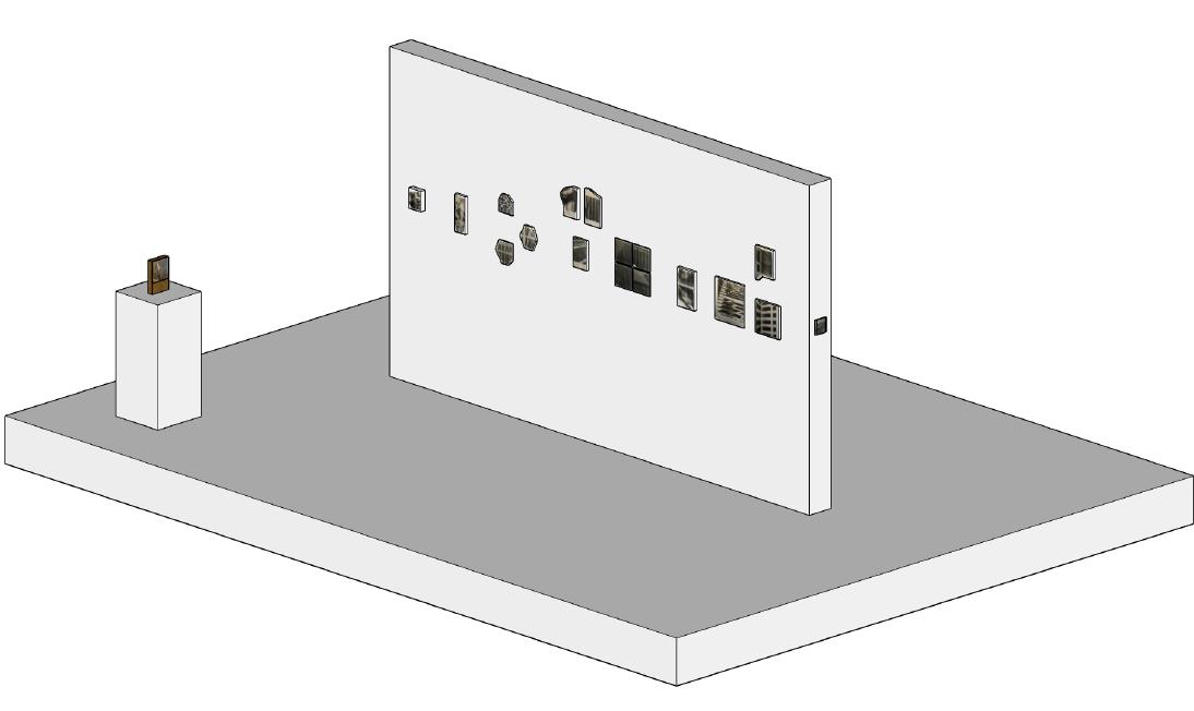 A série acontece através da coleta de fragmentos de forros e divisórias de gesso e sua posterior assemblagem no ateliê. As partes são recombinadas com o ituíto de traçar um perímetro que remeta a ideia de fechamento e forma inicial que esses materiais assumiam.