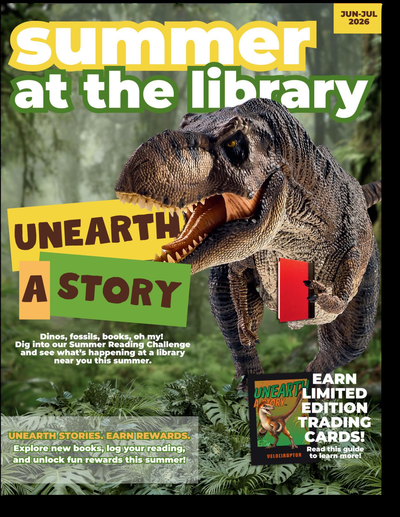 “Unearth a Story” and dig into adventure at the 2026 Soirée! Learn about our upcoming Summer Reading Program, snap a pic in our dinosaurthemed photo booth, make a special dino mask, and so much more at this exciting event. Also, don’t forget to sign up for a library card (or renew your current one — remember, cards expire every 2 years!)