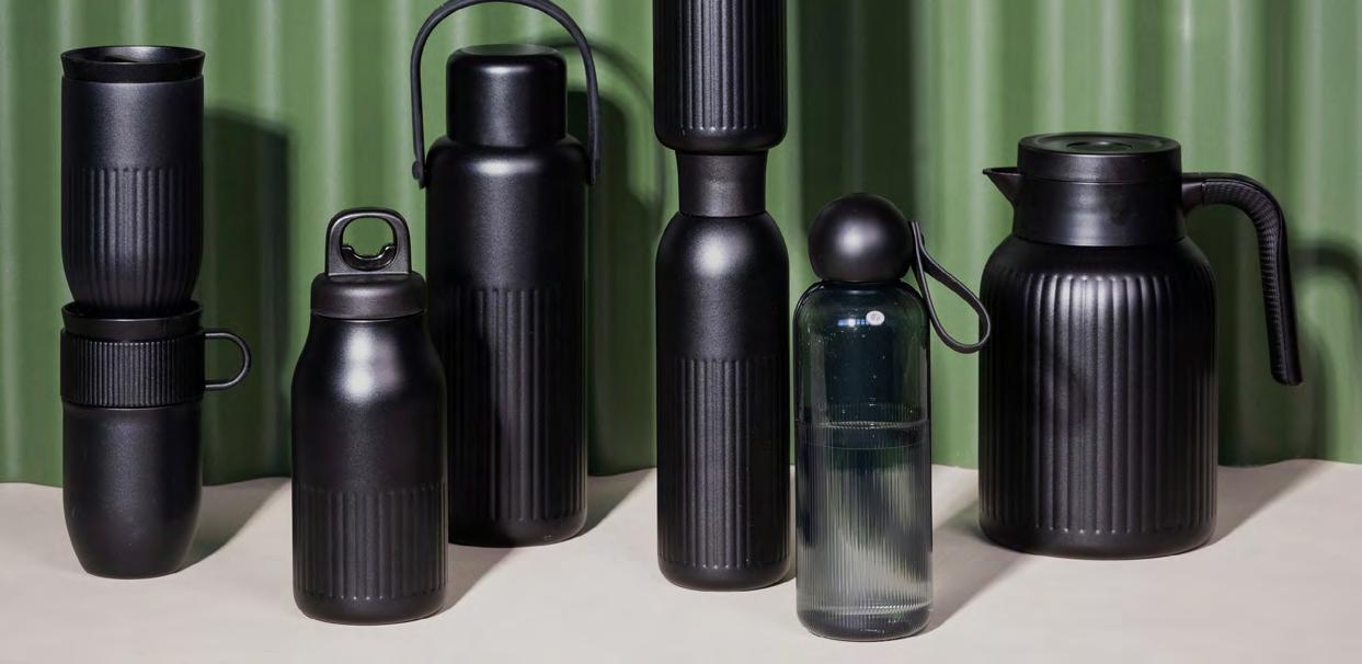 Sagaform tillverkade av återvunna material och med funktionella detaljer som gör dem enkla att använda på språng.