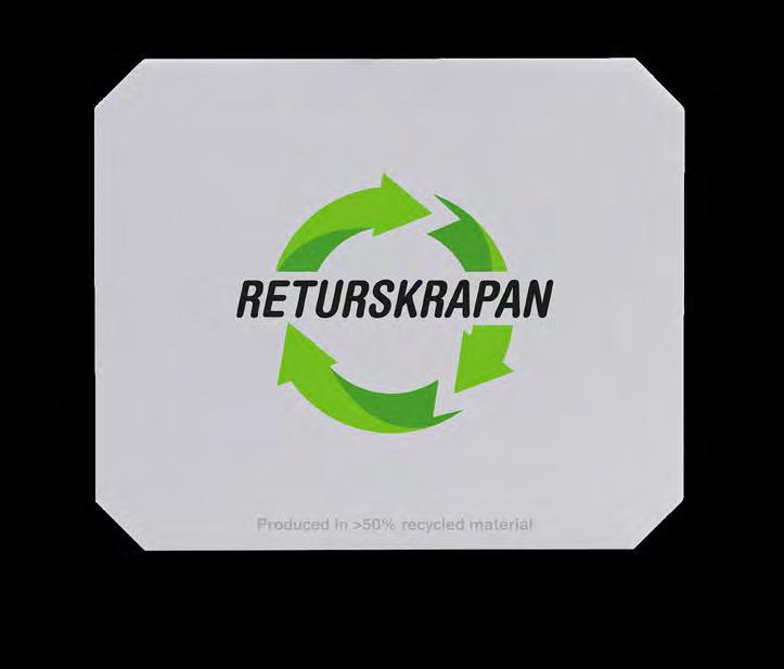 Isskrapa med minst 50 % återvunnet material. Produkten är producerad av återvunnet material från källsortering av bl a kylskåp.