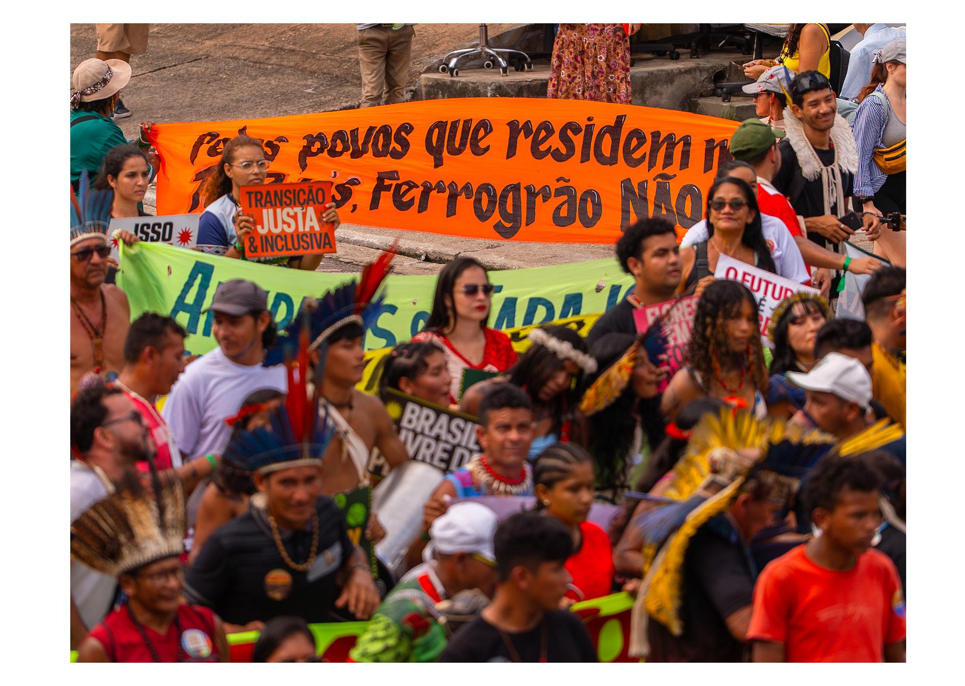 "Nós estamos com demandas urgentes. Nosso rio está contaminado por mercúrio, nossa terra está contaminada pelo veneno da soja, pelo glifosato, as queimadas estão contaminando o ar e a gente precisa de segurança, e a segurança é a demarcação do território. A gente precisa ser ouvido, precisa ser escutado, a gente precisa falar. Não interessa para nós ficarmos no acampamento da COP Aldeia, não interessa para nós as programações da COP, nos interessa protagonismo e intervenção. Foi por isso que nós fizemos o ato, foi por isso que fomos para a frente da Blue Zone, foi por isso que a gente tentou ocupar um espaço que, historicamente, nunca foi ocupado por movimento social nenhum e, pela primeira vez, a gente, a partir da nossa luta, da nossa incidência, fomos escutados, a partir dessa relação movimento social, movimento indígena e sindicato. Eu acho que essa articulação é necessária para os tempos que virão."