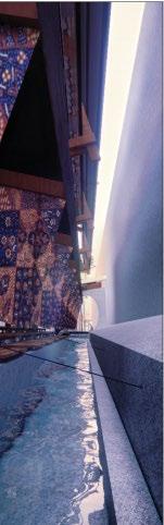 There’s a series of hidden spaces in each zone that people can visit to relax. Facing the existing border walls at the west, the space feels more intimate and static that allow a deeper spatial experience. There’s visual connectivity between each hidden space, using full circle geometry as the void shape to stimulate a certain kind of experience. People could shift from high to low-energy spaces to create a balance of experience and stimulation. The Inner Zone uses neutral and natural tone colors. Light and water elements also take big parts in it.
