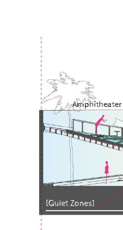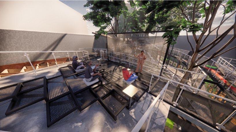 There’s a visual connectivity between the different areas of the zones with transition area in-between. In the Outer Zone, people can see different kinds of activities since the enclosure that separates them is a mostly transparent material. There’s a sense of connection. People can move from space to space by following the continuous circulation path. The space’s designed to embrace the energy of social interaction and creative collaboration for the community.