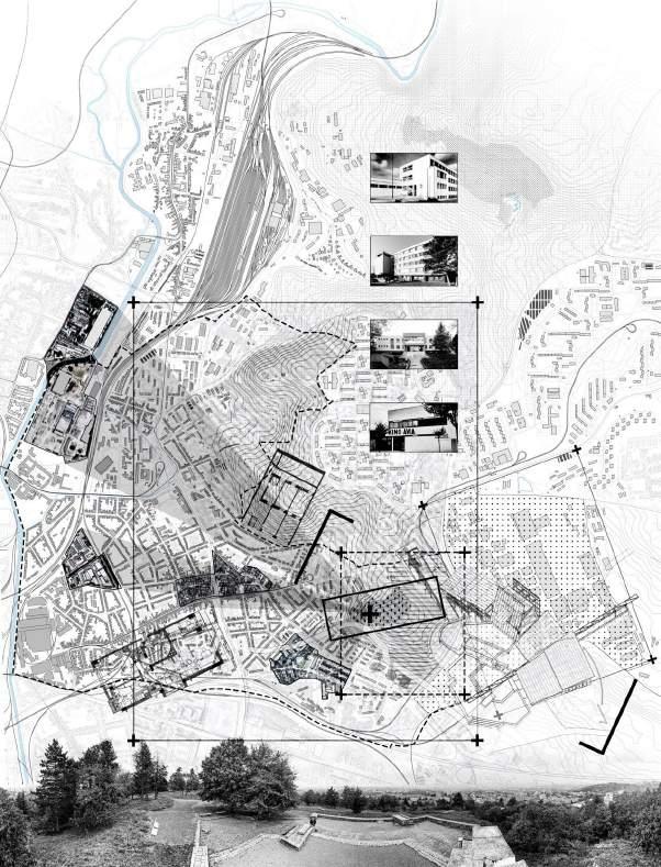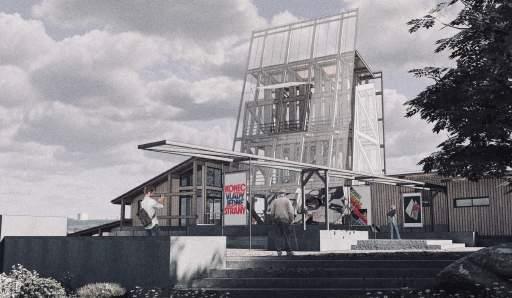 The proposed belvedere is a machine to view scenes that commemorate Bila Hora and Brno. Bila Hora (White Hill) is the location of a labor movement monument, dedicated to the workers of Brno’s textile industry, that now becomes a focus for a campus of buildings engaged in the legacy of this activity. The Paperhouse serves as an archive for the geographical information related to this rich period of the city’s history, as well as viewing tower for the direct visual link back to many of these former sites.