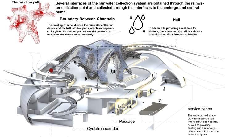 The concept aims to restore the Loulan city-state, which perished due to drought. The abundant ground water in the basin and the snowmelt water at the foot of the mountains are diverted to the surface for irrigation and use through artificially excavated underground channels that are unaffected by seasons and sandstorms and have low evaporation rates. At the same time, surface water supply points are established to enhance public communication for urban residents.