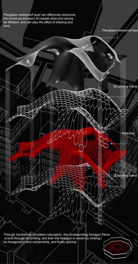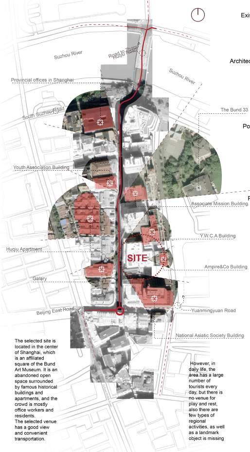 The Bund is a historical area located in the heart of Shanghai, with a large number of tourists every day, but there is no venu for rest and temporary leisure. Hence, the project aims at providing a structure for the public at a vacant point where taking abundant volume of pedestrians.