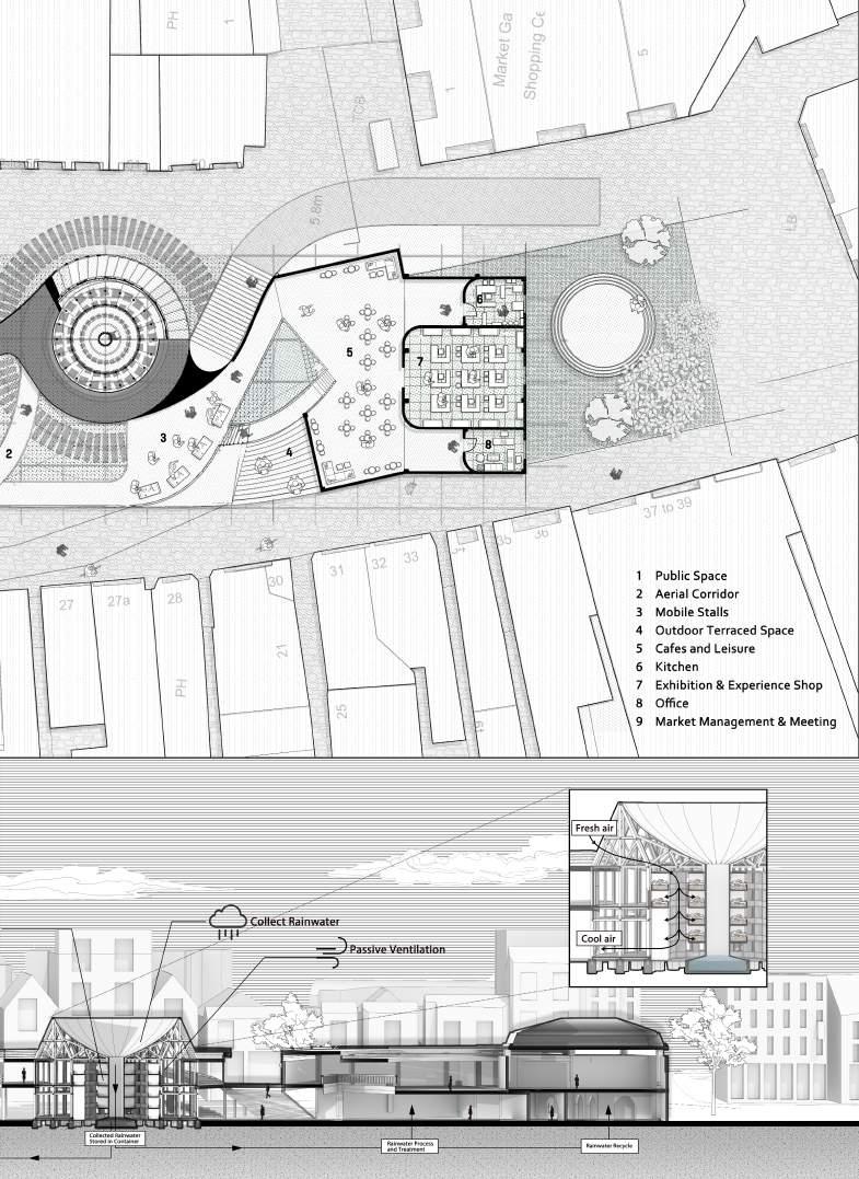 The Great Yarmouth Market place carries the physical communication function in Great Yarmouth via connecting human-scale public spaces to enable a barrier-free and safe connection between ordinary users and commercial & functional value. And by bringing the recycling and production system of surplus food consumed in the market back to the place ontology to reconnect the structure of the market and the production chain of recycled food to strengthen the connection between the crowd and the market.