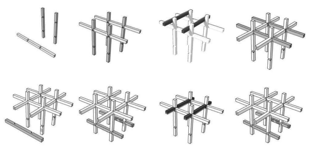 Based on the drawing of structural fragment, a physical model is produced to initial investigation of its relationship with the context (ground, walkway,adjacent spaces...etc). And the structure kept optimizing whilst making procedure.