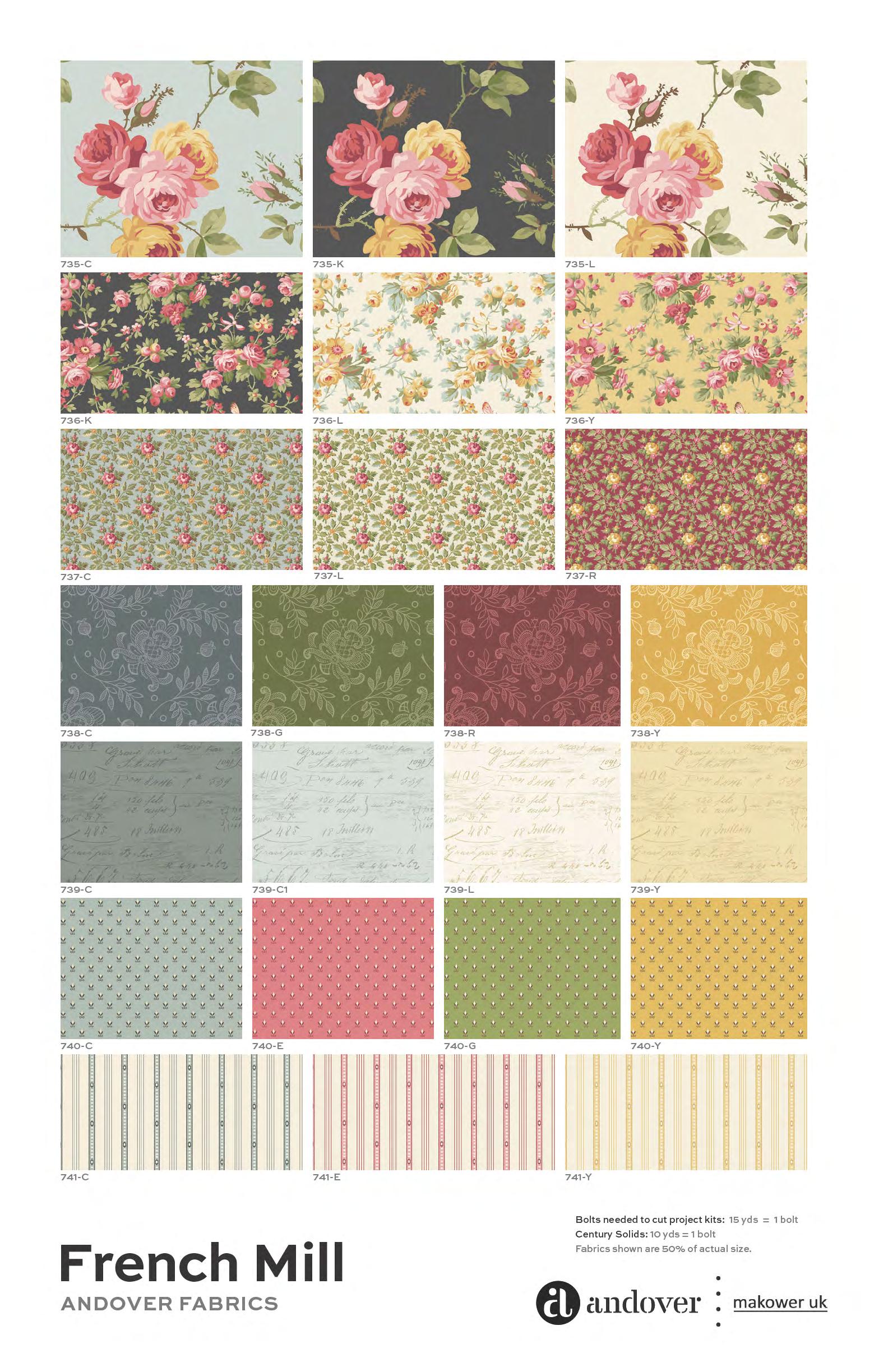 Drops Andover Fabrics August 2023 16 SKUs A 715 R A 721 O A 711 G A 709 G A 724 LB A 720 LB A 710 P A 717 P