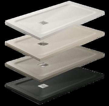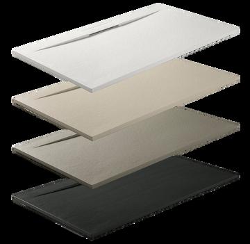 Compacta, leve e resistente, com ralo lateral oculto, textura de ardósia e certificado antiderrapante classe 3.