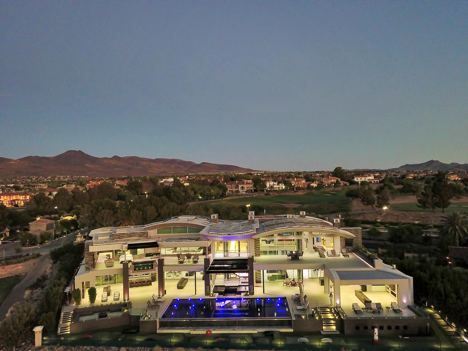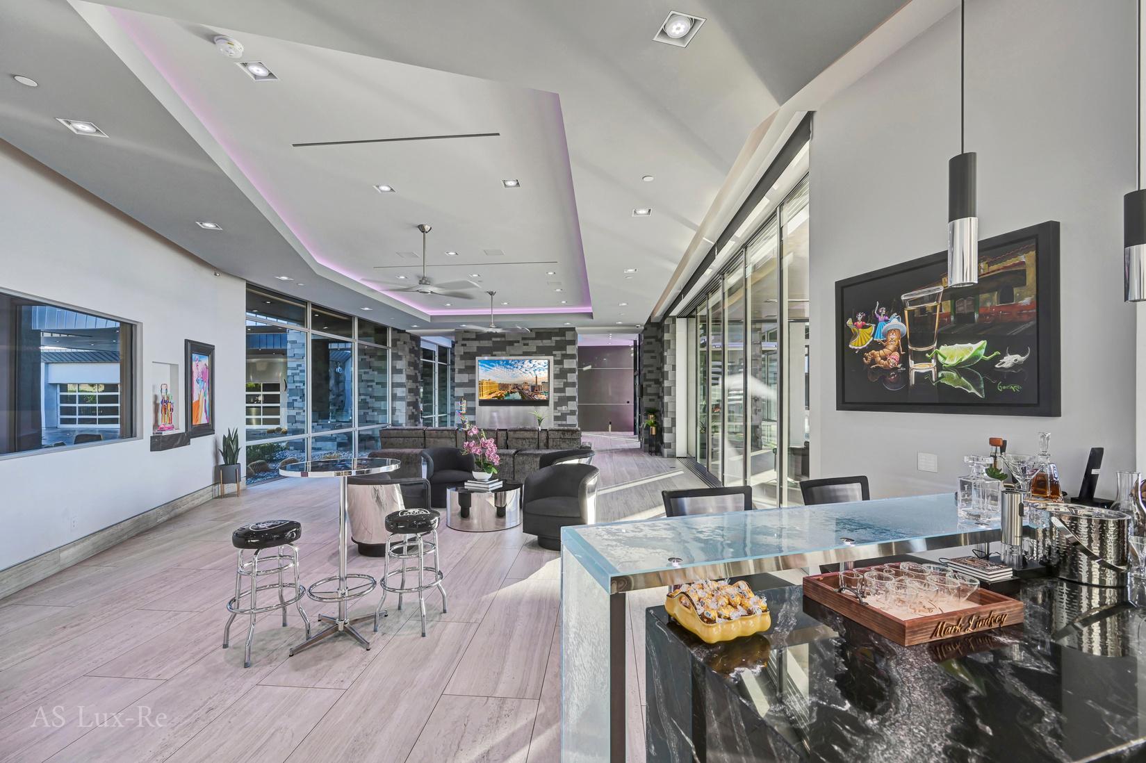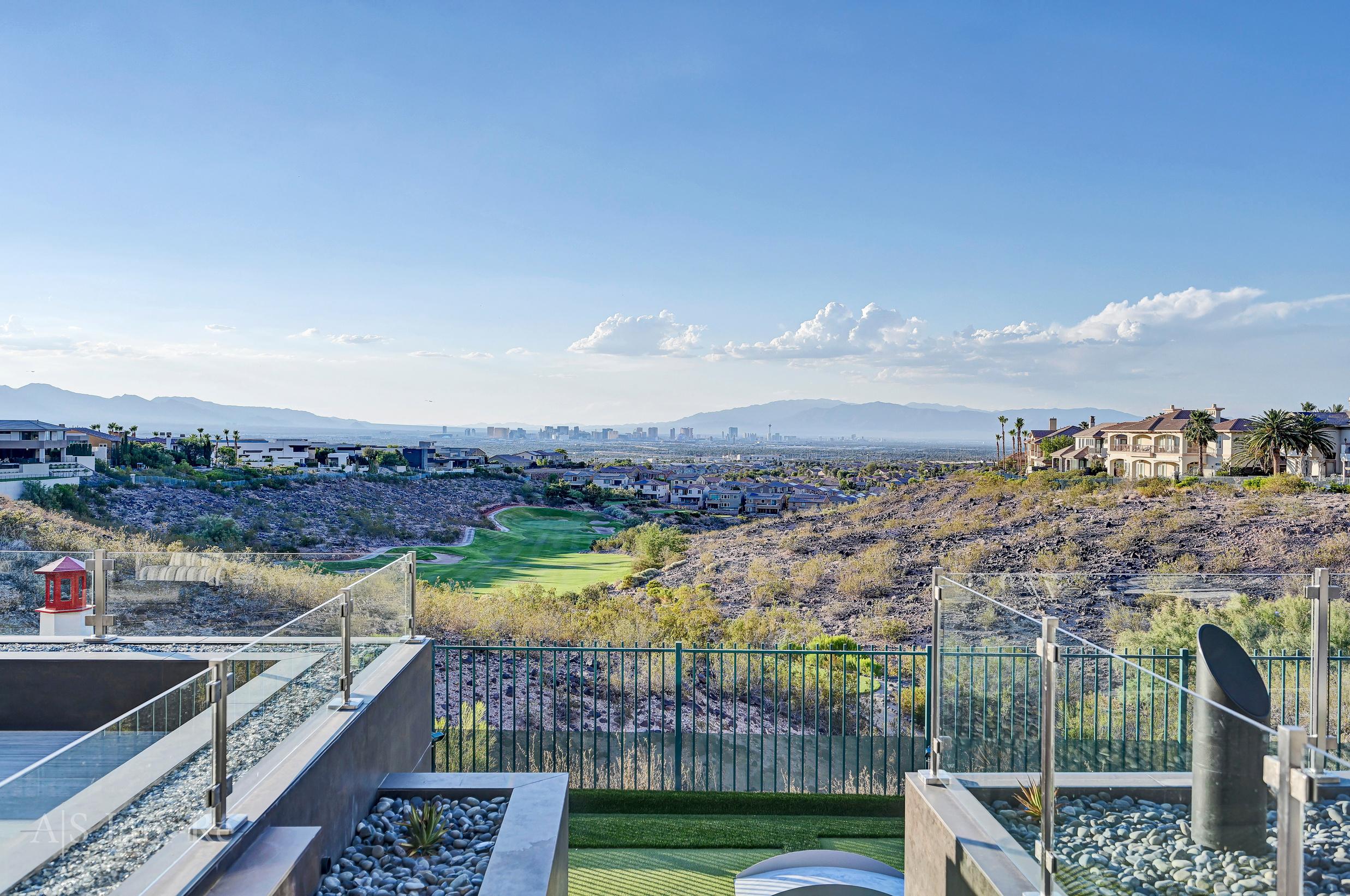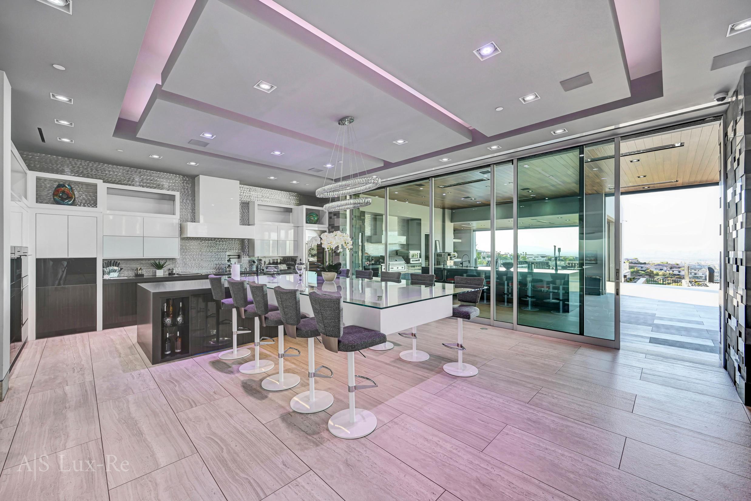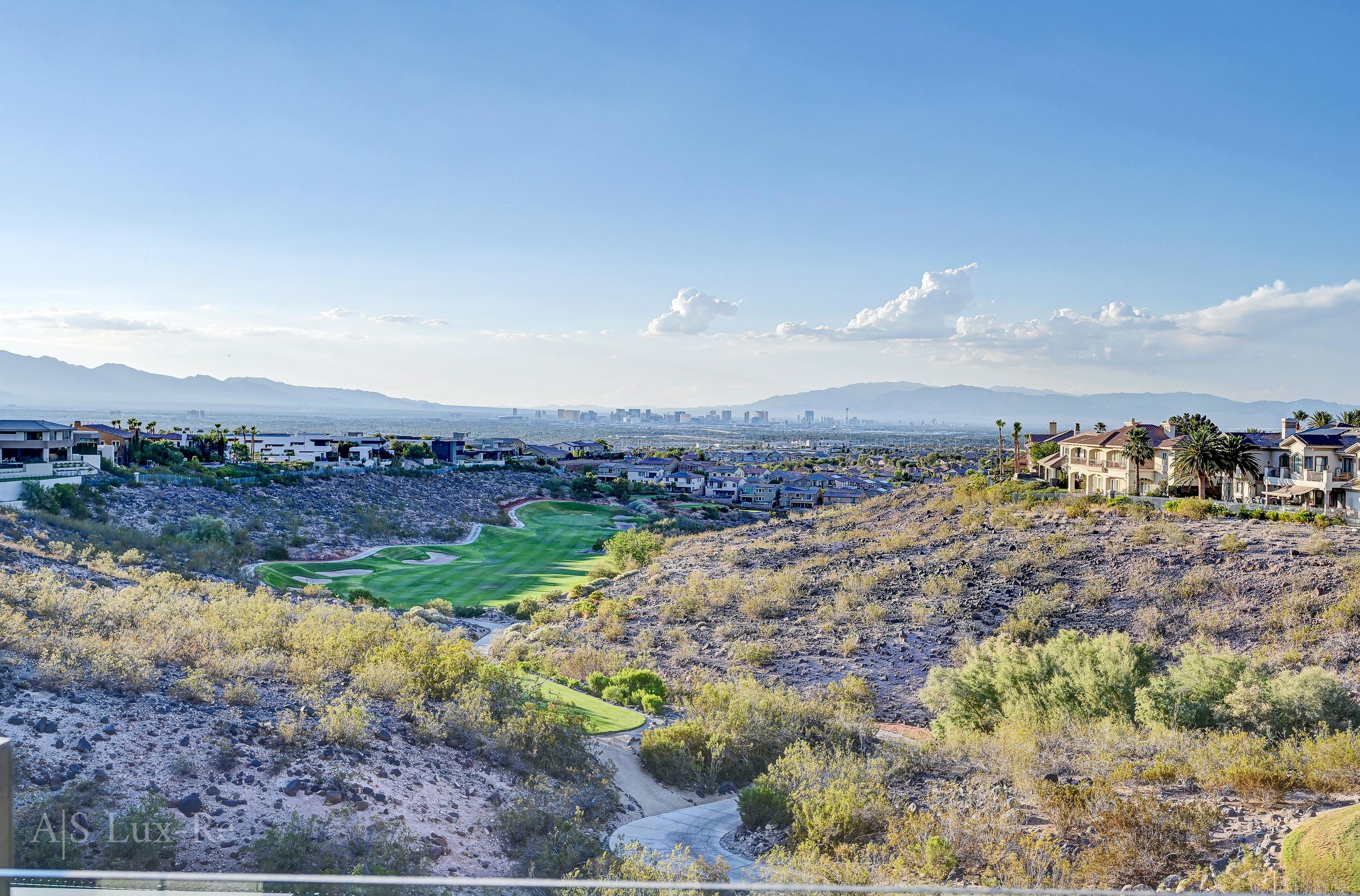 Primary suite has a vast skylight, strip & Golf Course Views, as well as large dual sided projector screen