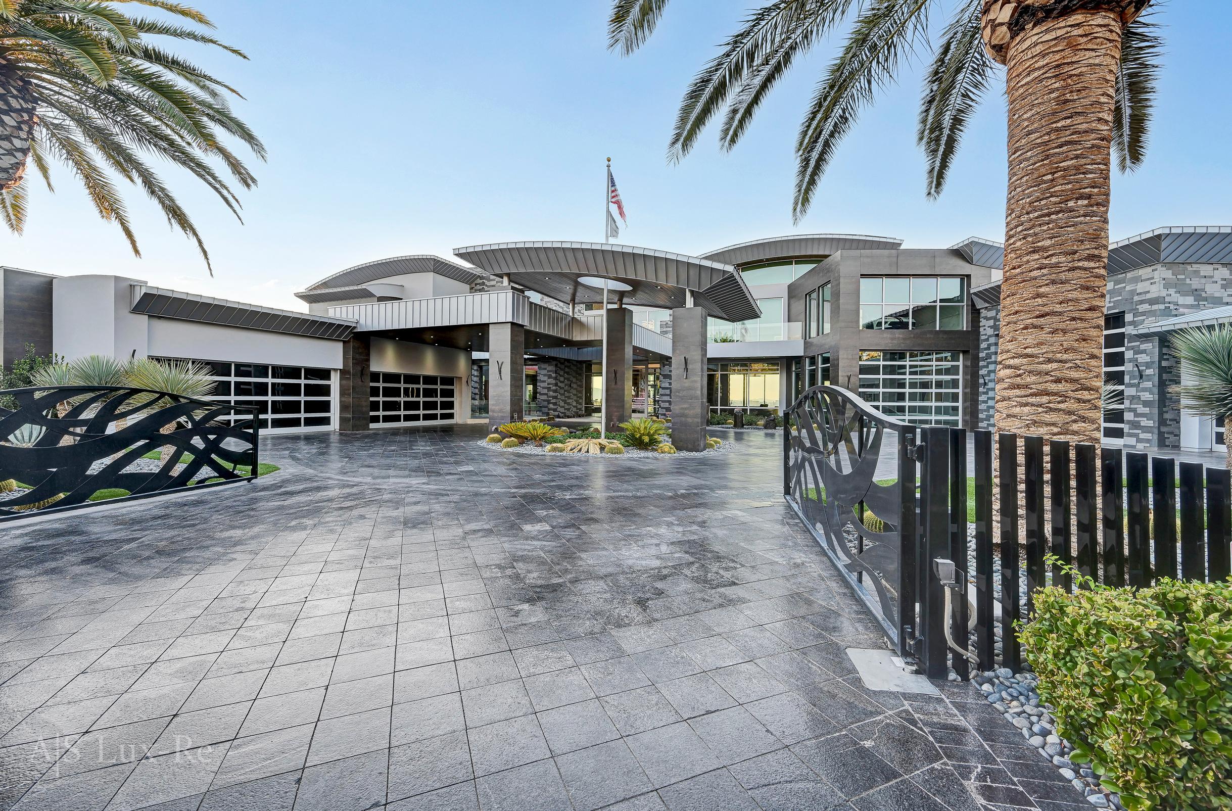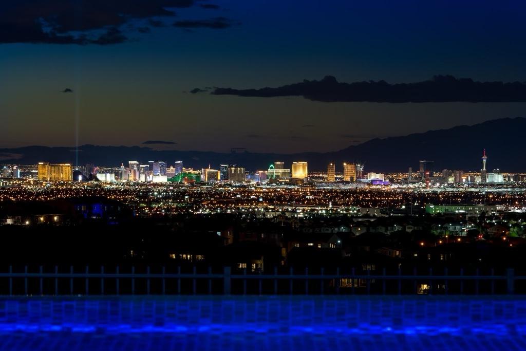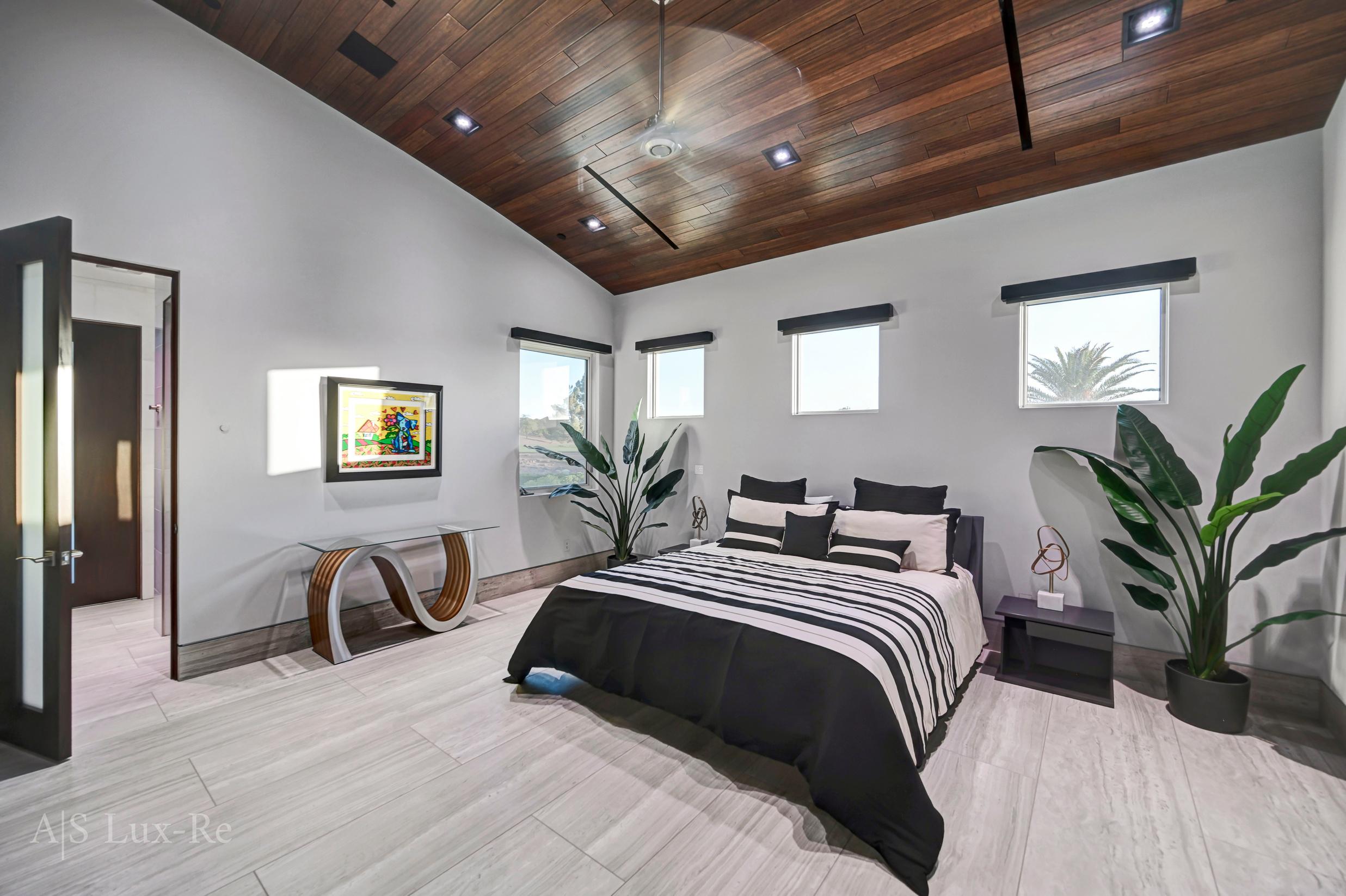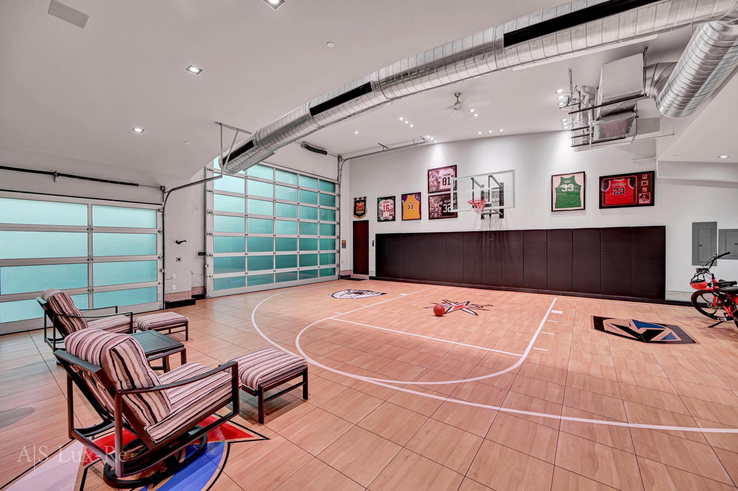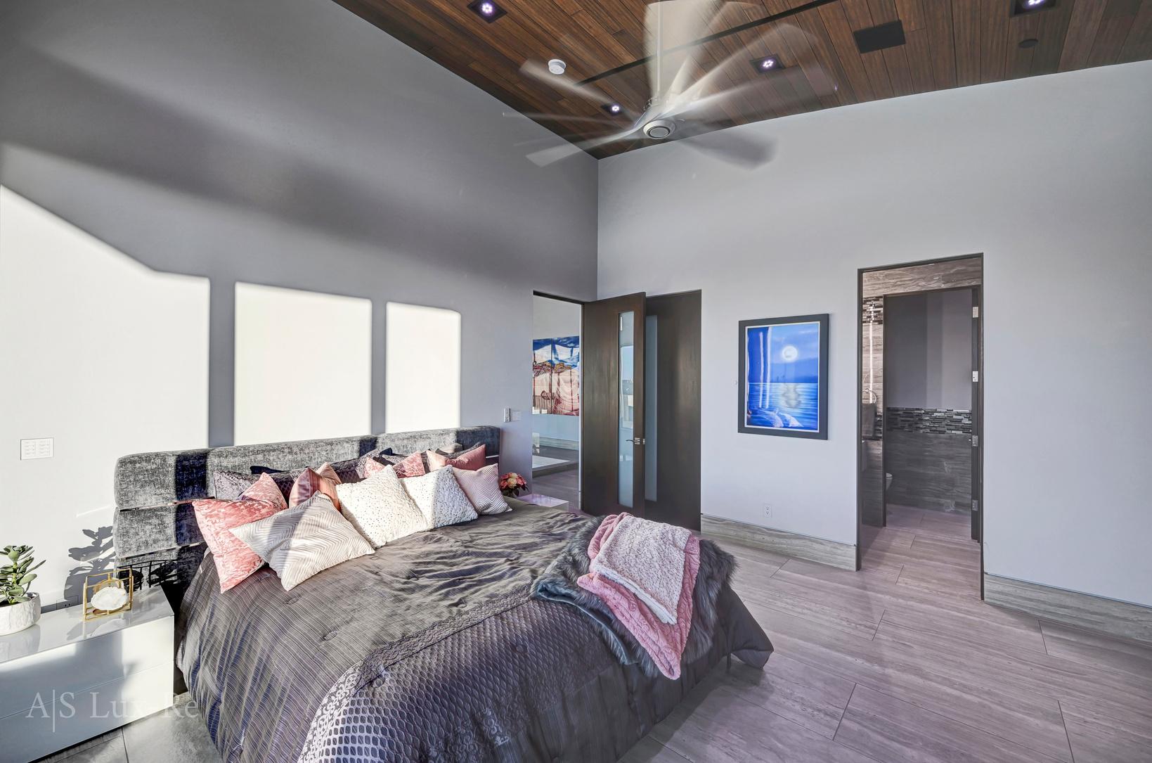 Primary suite has a vast skylight, strip & Golf Course Views, as well as large dual sided projector screen