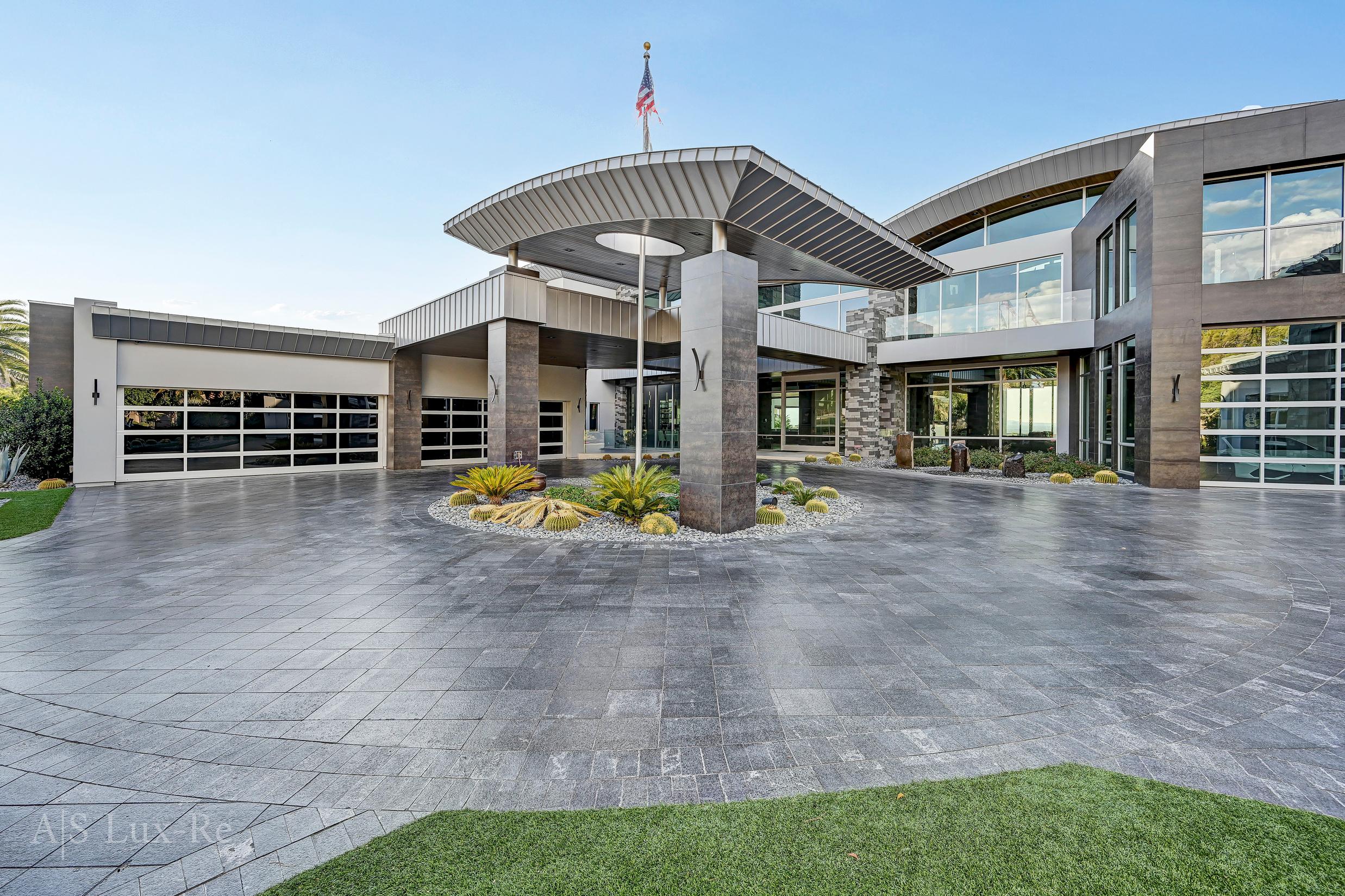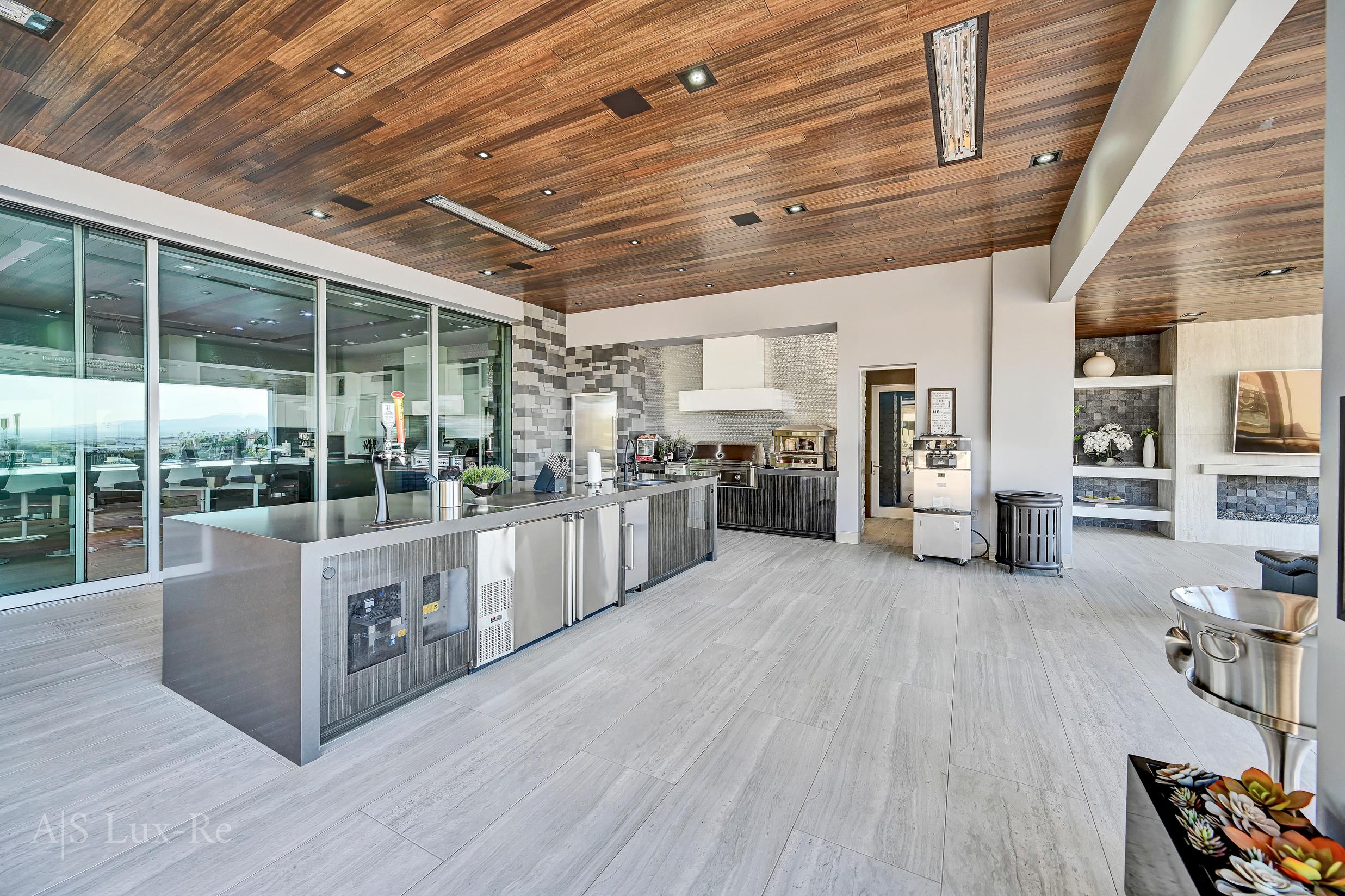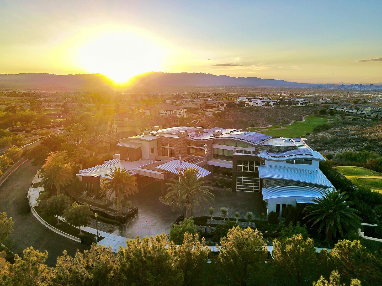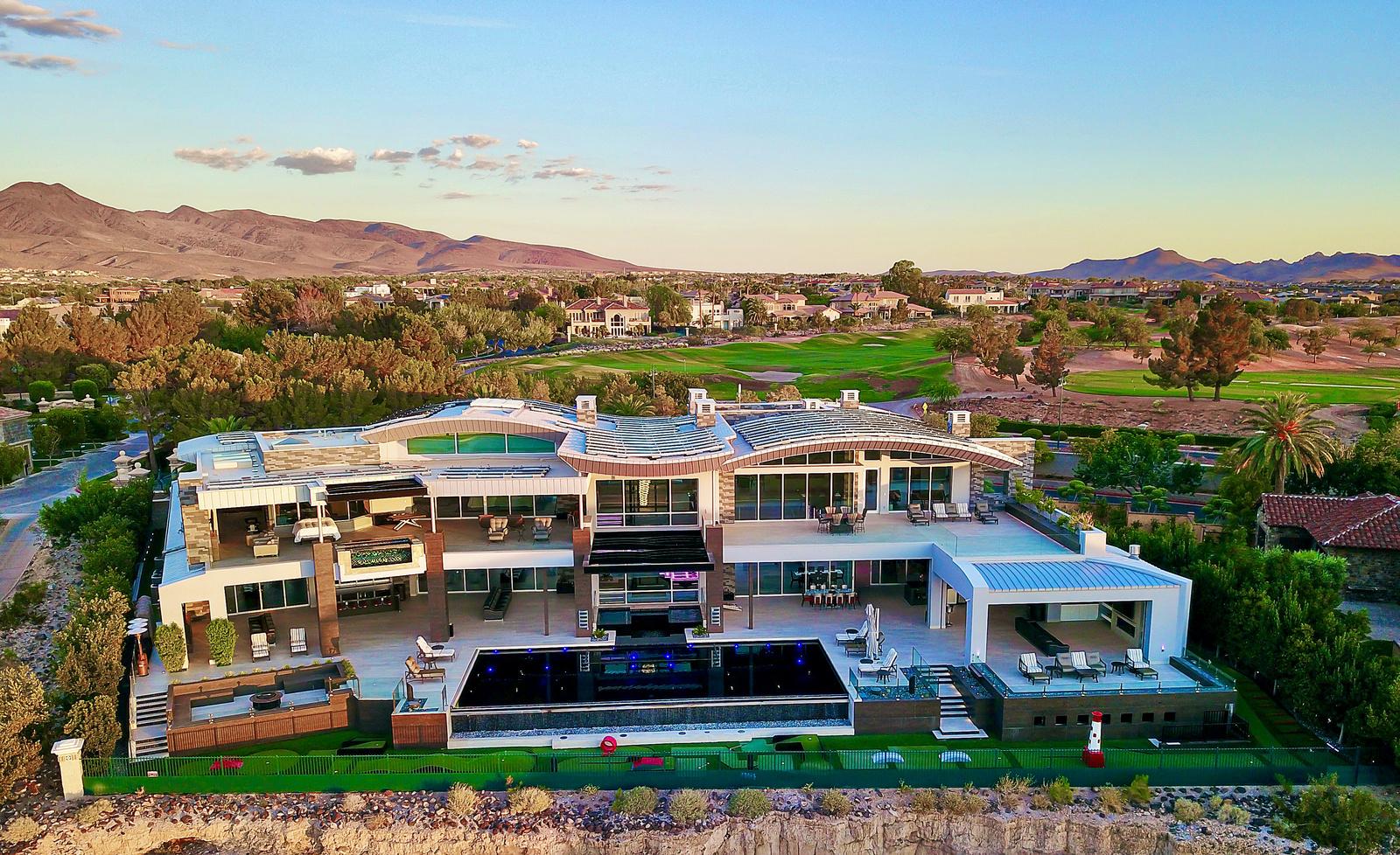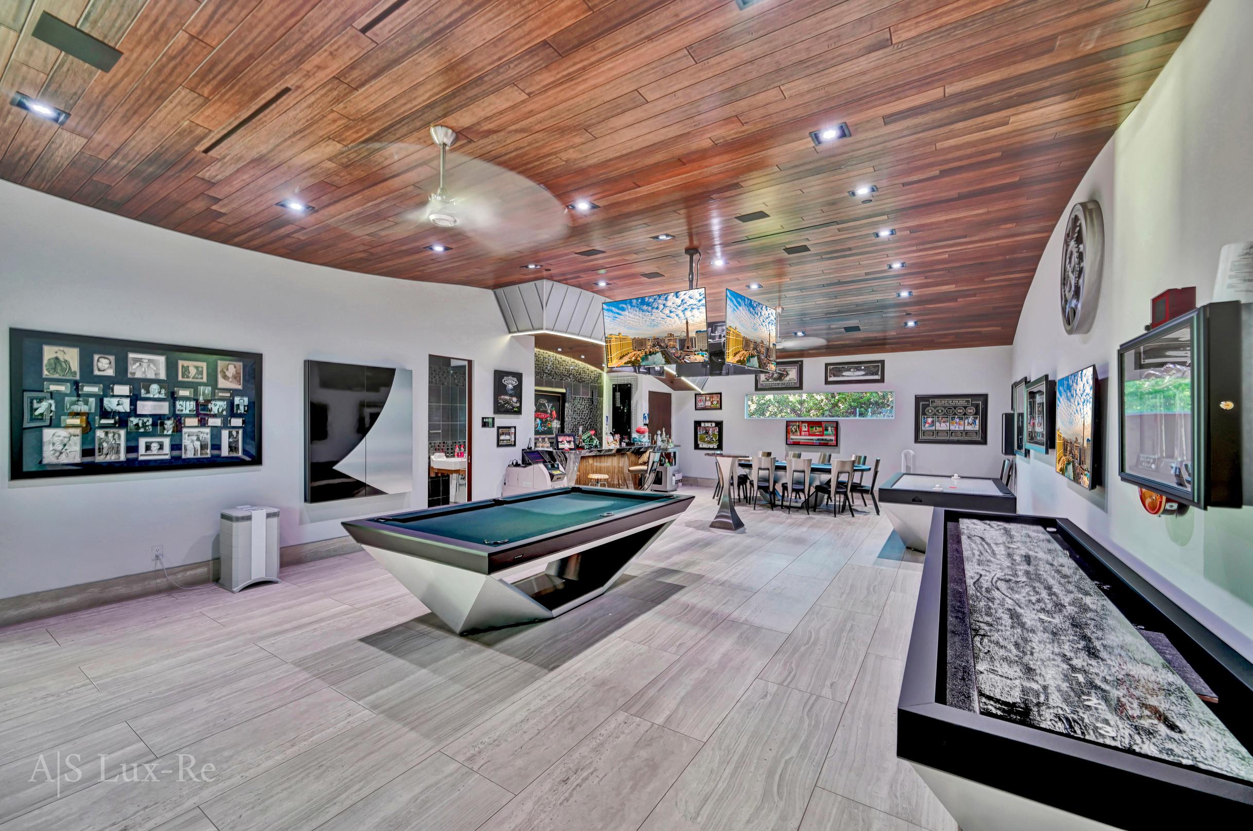 Primary suite has a vast skylight, strip & Golf Course Views, as well as large dual sided projector screen