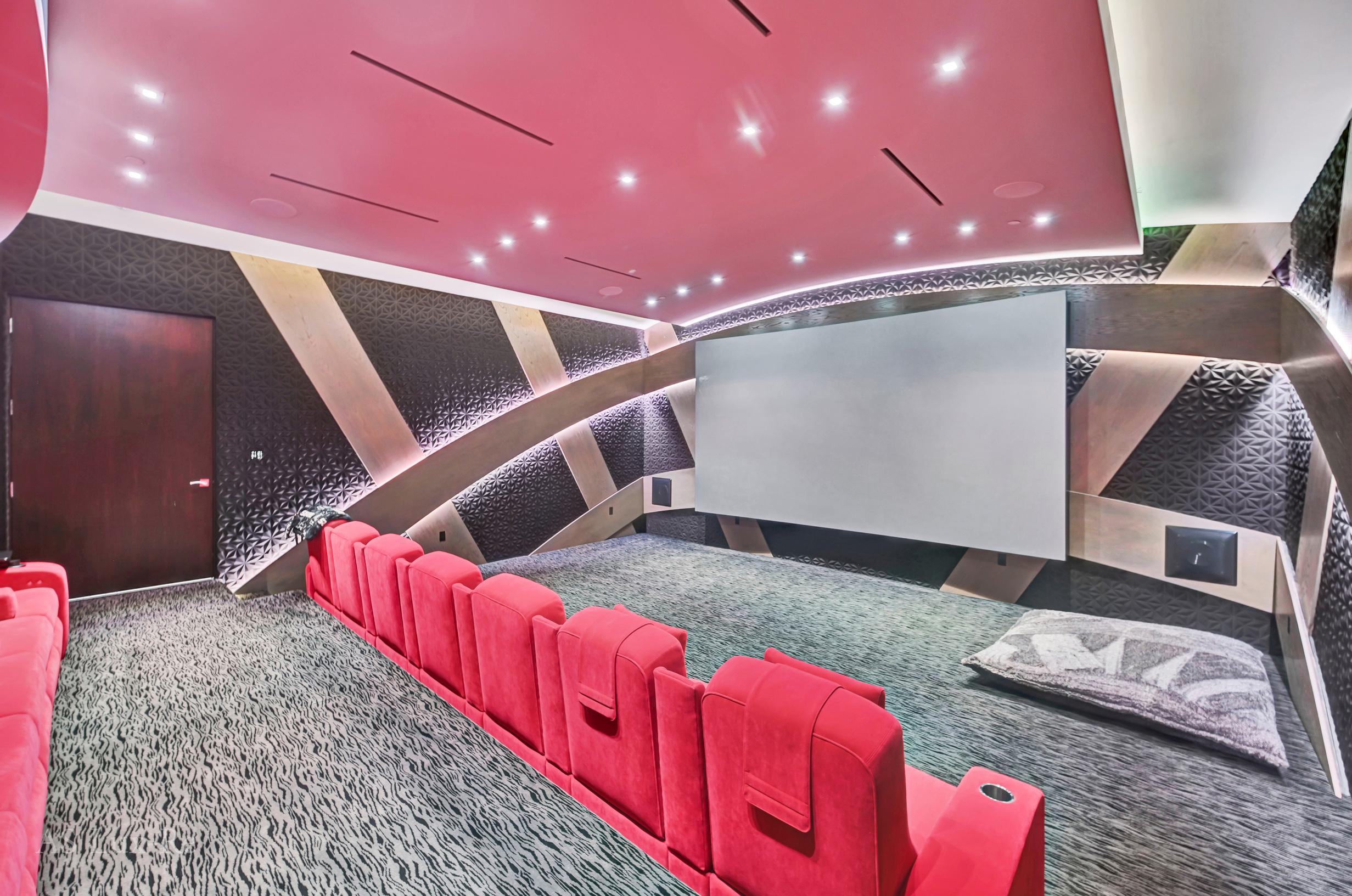 High-fidelity music distribution and 32 video displays throughout featuring centralized 4K video distribution.
