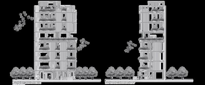 TRAS HABER ANALIZADO EL SECTOR Y EL SOLAR. SE ANALIZARON LOS ESPACIOS “EN BLANCO” EL CUALES PUEDEN SER EDIFICADO. EN ALGUNOS DE ESTOS ESPACIOS SE AGREGARON VEGETACIÓN DEL ÁREA PARA CREAR UN EFECTO MAS PROMINENTE DE VISUAL Y SOMBRAS EN LUGARES DETERMINADOS. DESPUÉS SE ANALIZO COMO LA VEGETACIÓN CONTRIBUYE AL PROYECTO, CREANDO MÁS VIENTO Y PROTEGIENDO DE INCIDENCIA SOLAR. ADEMÁS DE CREAR UN EFECTO VISUAL AGRADABLE PARA EL USUARIO. EL PROYECTO TAMBIÉN SE BENEFICIA DE EL HECHO DE QUE TIENE CUBIERTA VERDE, EL CUAL AYUDA A REDUCIR EL CALOR DENTRO DE LA EDIFICACIÓN. AL IGUAL QUE LOS ELEMENTOS VERTICALES QUE LA PROTEGEN, AYUDAN A REDUCIR LA INCIDENCIA SOLAR Y PROTEGER DE LO QUE PASA EN EL EXTERIOR.