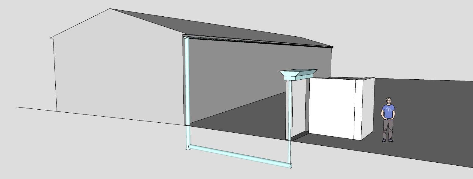 The system provides water storage for a 9 day drought period (based on Denmark climate characteristics) which requires 1287L x 9 days= 11583 L H2O to be able to take up 75% of 1200 kWh incoming latent heat in 200 m² area during hot summer day. Water storeage tank system provides water supply in draugh periods, and is situated on the top of the panels and on the top of the monkey bar. The system is connected to the roof pipes for rainwater management providing water source for the water tanks. Finally, the system is capable managing all of the water from the roof facing the yard where the coolspot is situated during 5 year rain event