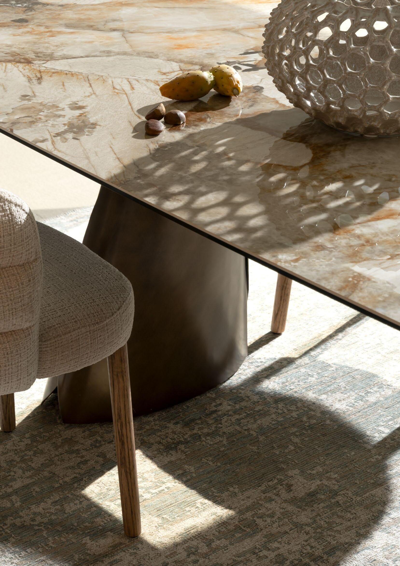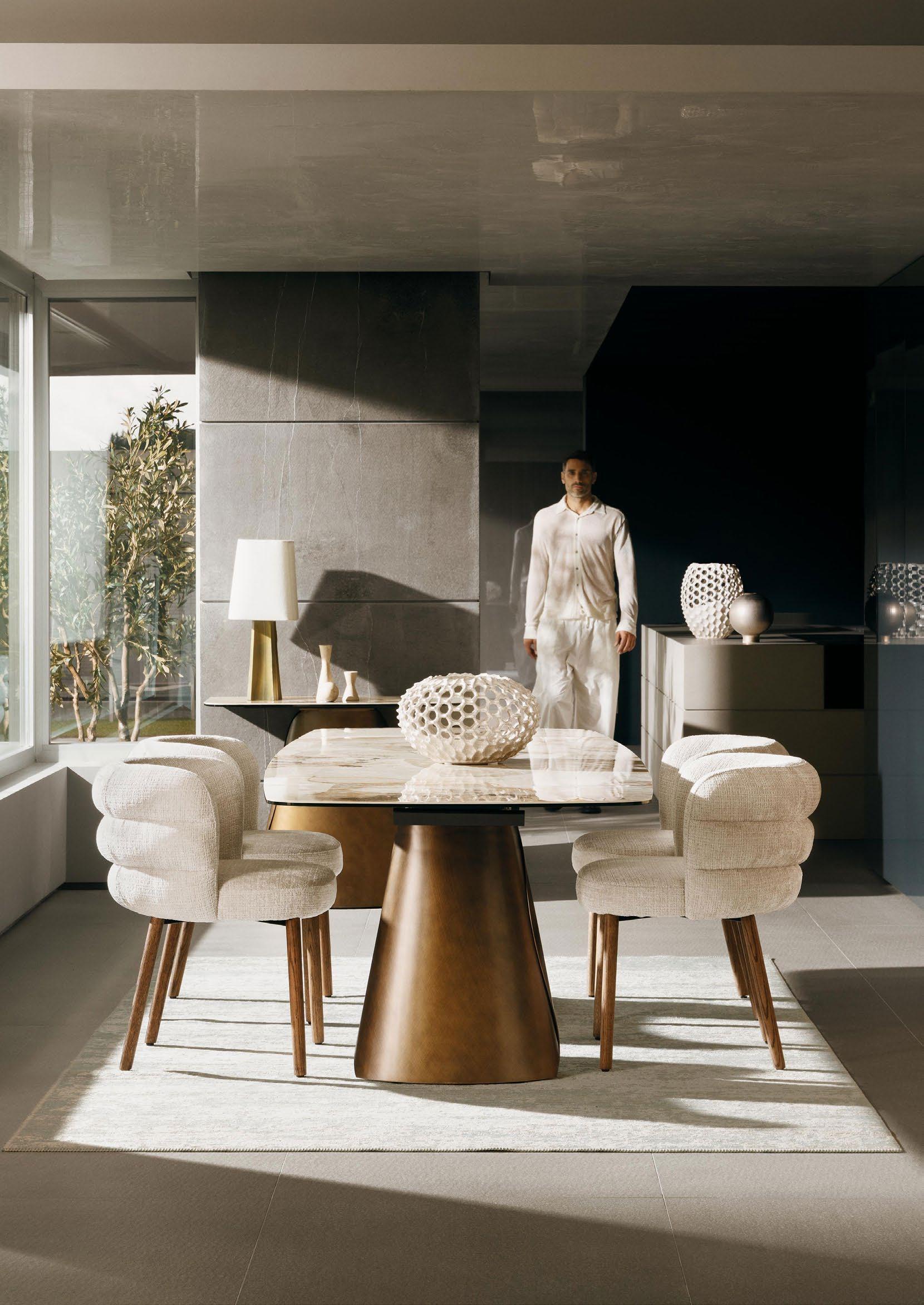 I tavoli allungabili, cuore pulsante della convivialità, si declinano in forme rettangolari, tonde e geometriche: versatili sculture d’arredo che si trasformano con un gesto, adattandosi a ogni spazio e momento. Le finiture delicate e i dettagli ricercati raccontano una cura artigianale che non rinuncia all’innovazione, restituendo un design che unisce rigore e poesia.