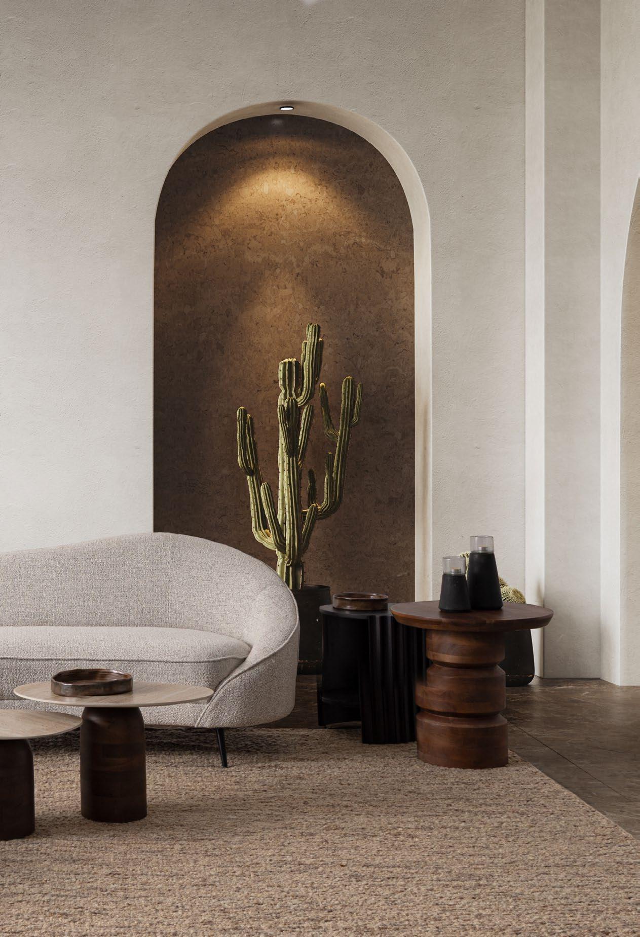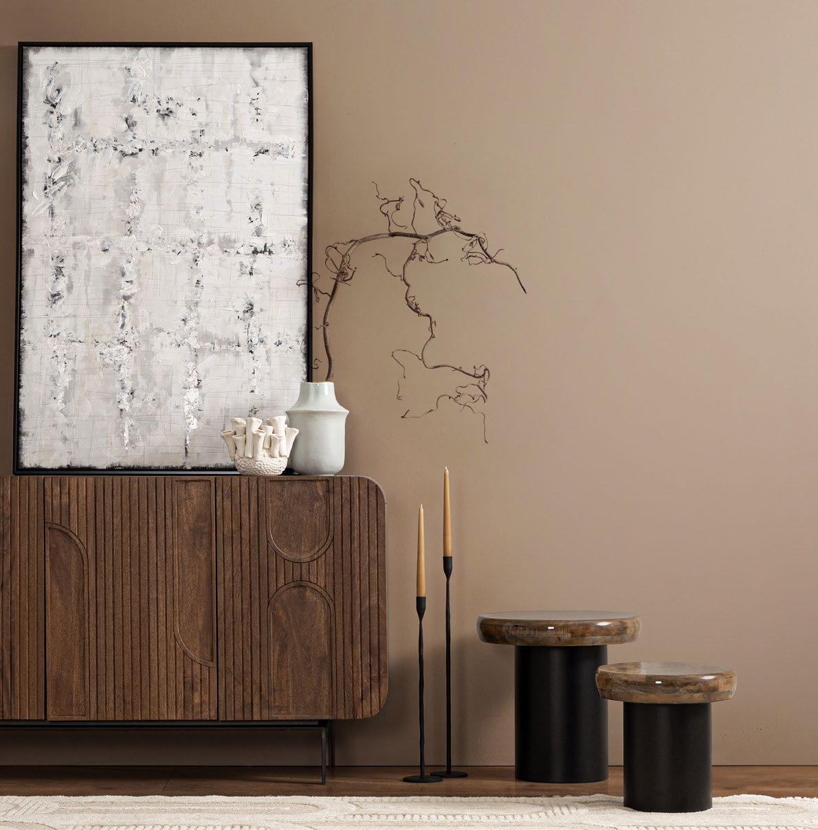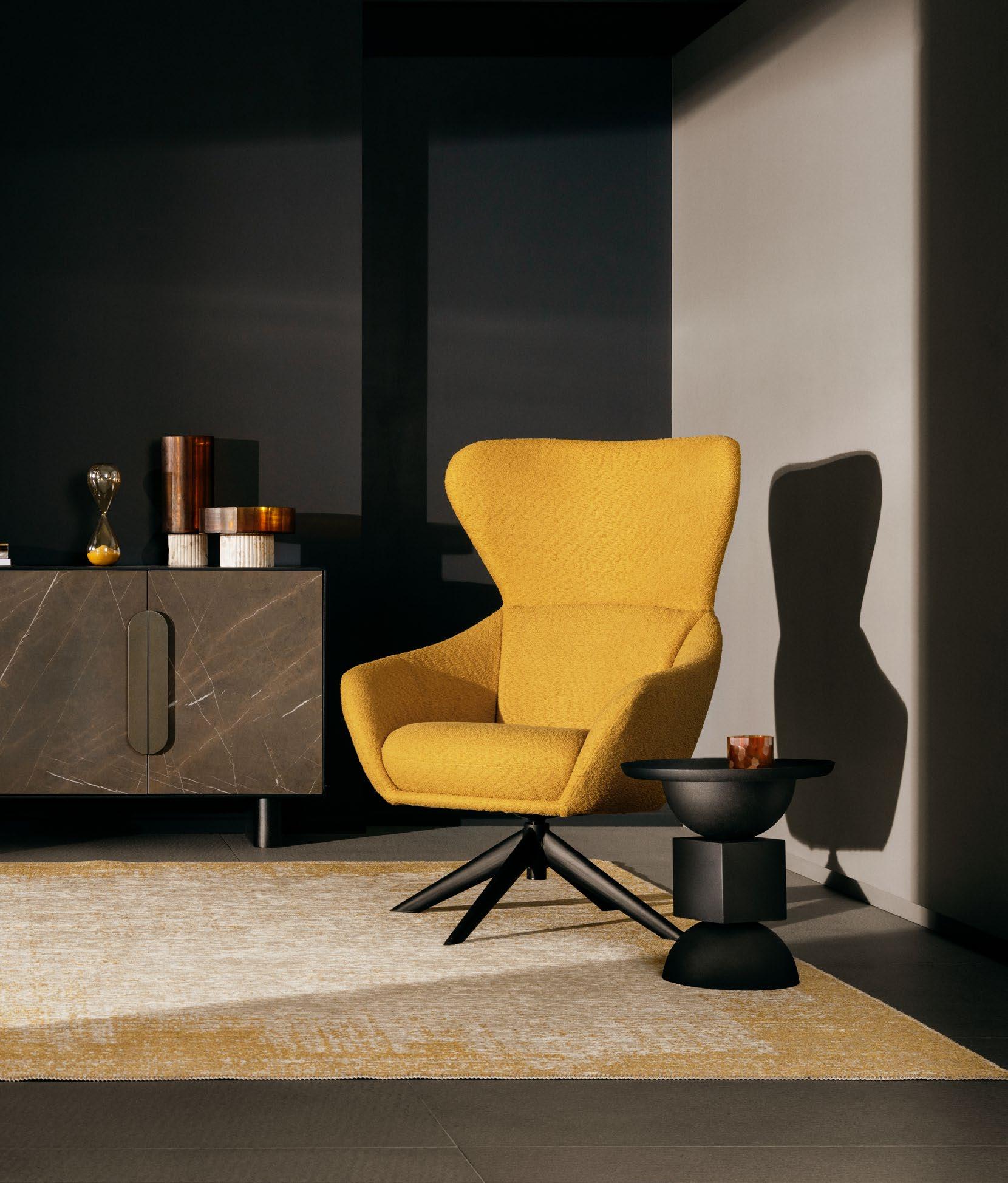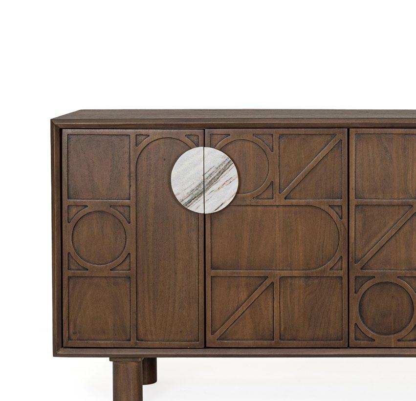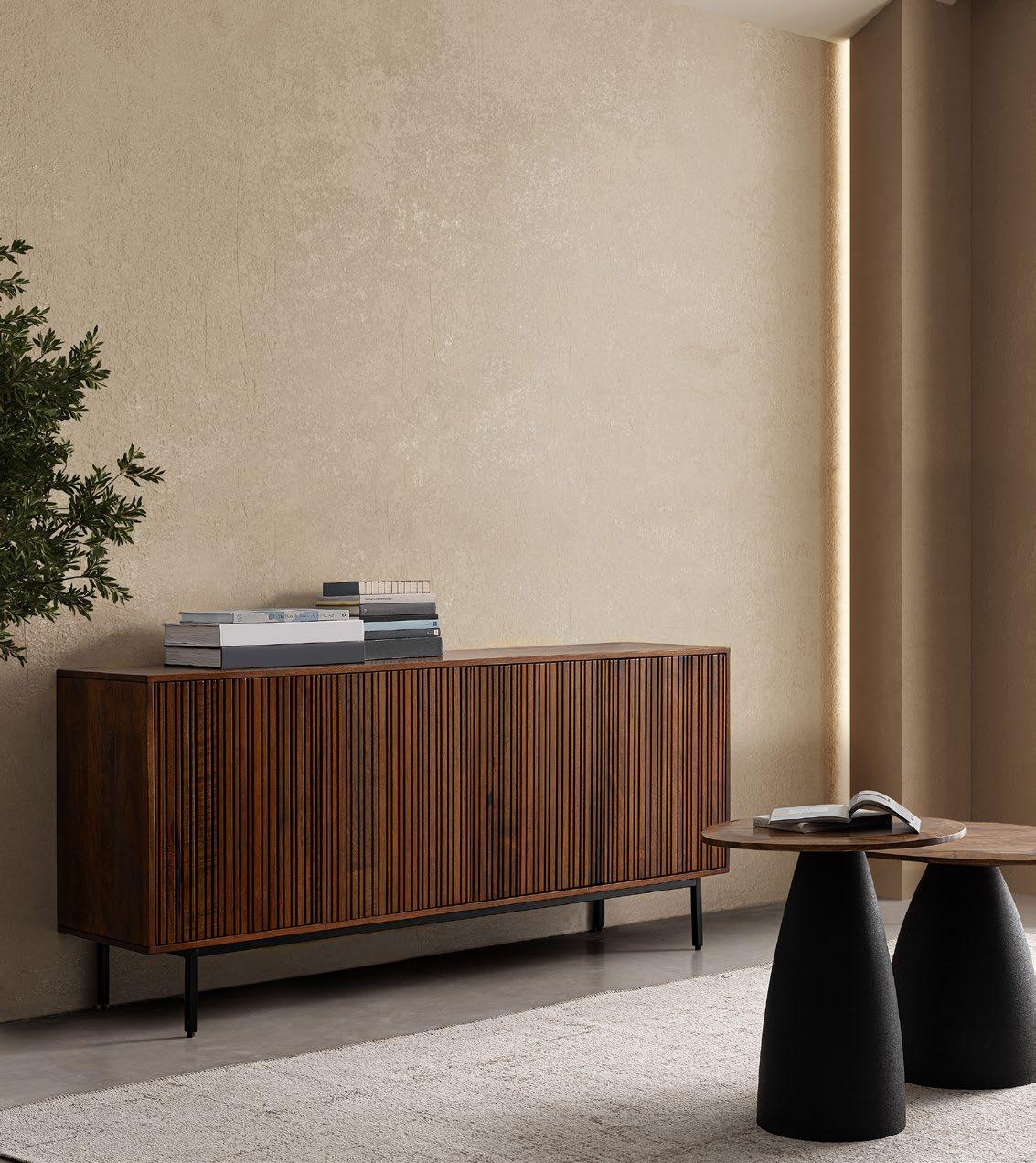 Nelle pagine precedenti: Mangal, Mobile porta TV 0747421; Stanley, Tavolino 0747084; Mangal, Mobile Alto 0747419; Mangal, Mobile 2ante e 2cassetti 0747420; Brianna, Poltrona 0746125;