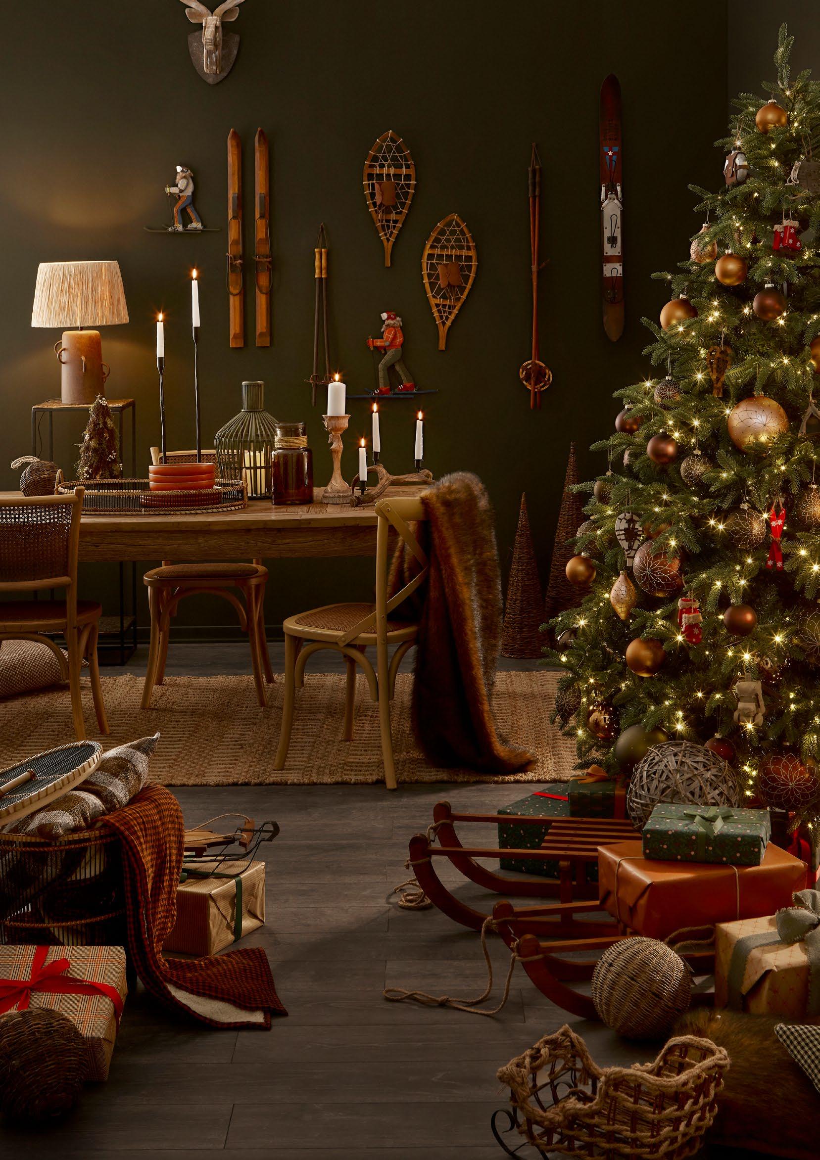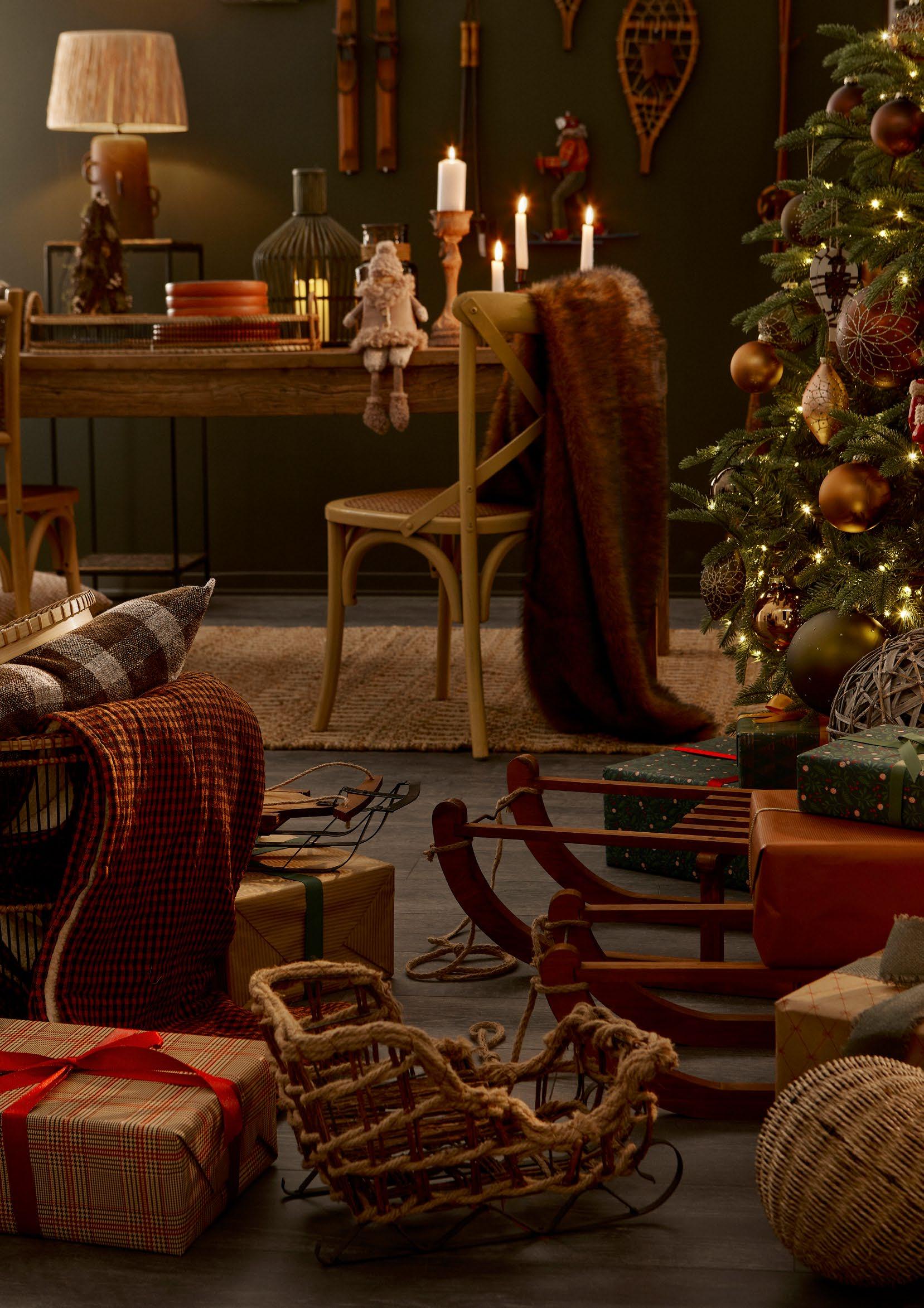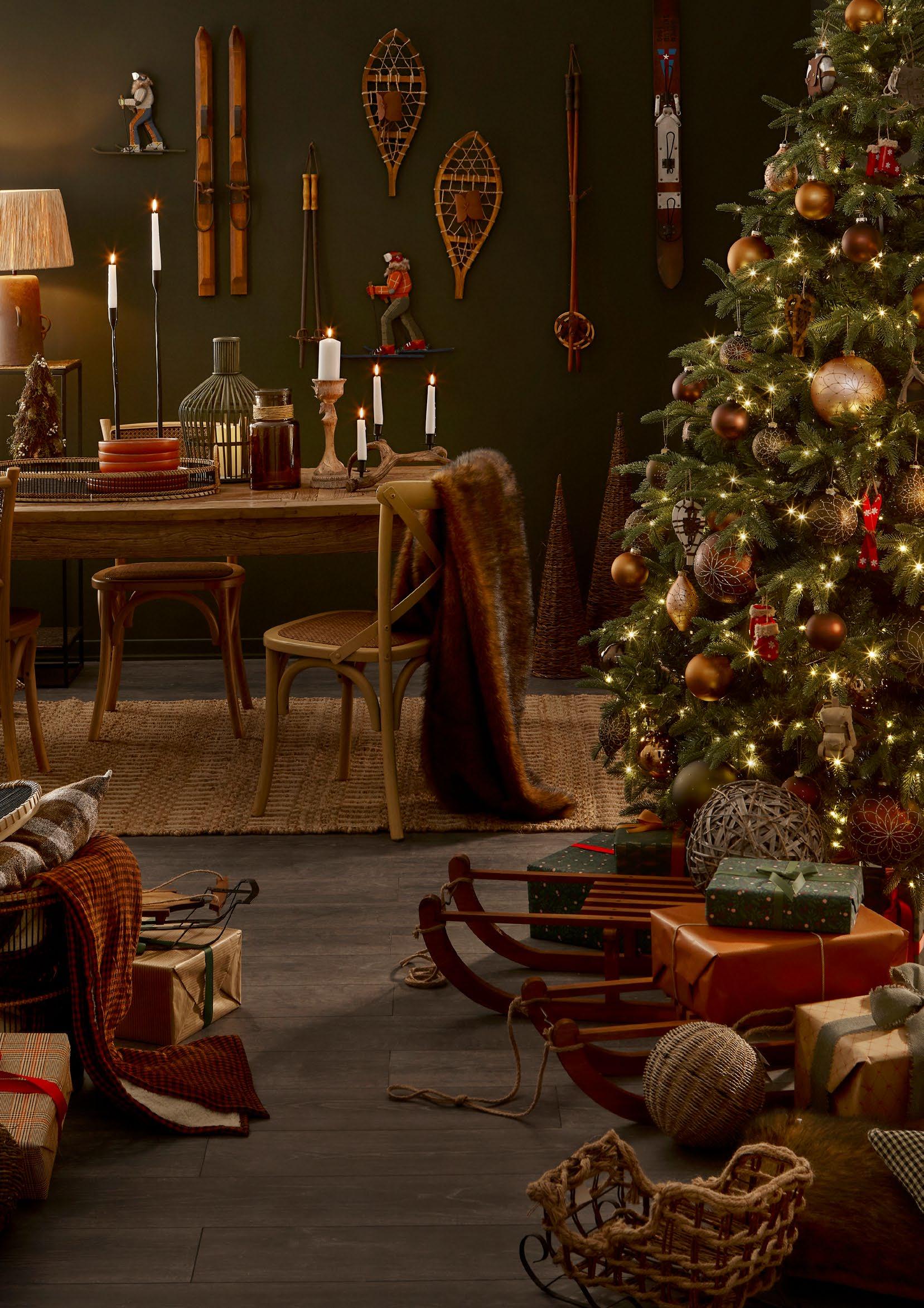 A mountain cabin decorated with earthy colors is the setting for a rustic Christmas. Each decoration tells a story: garlands woven with dry branches, centerpieces adorned with pine cones and berries, while the soft lights dance among the shadows evoking the magic of an enchanted forest.