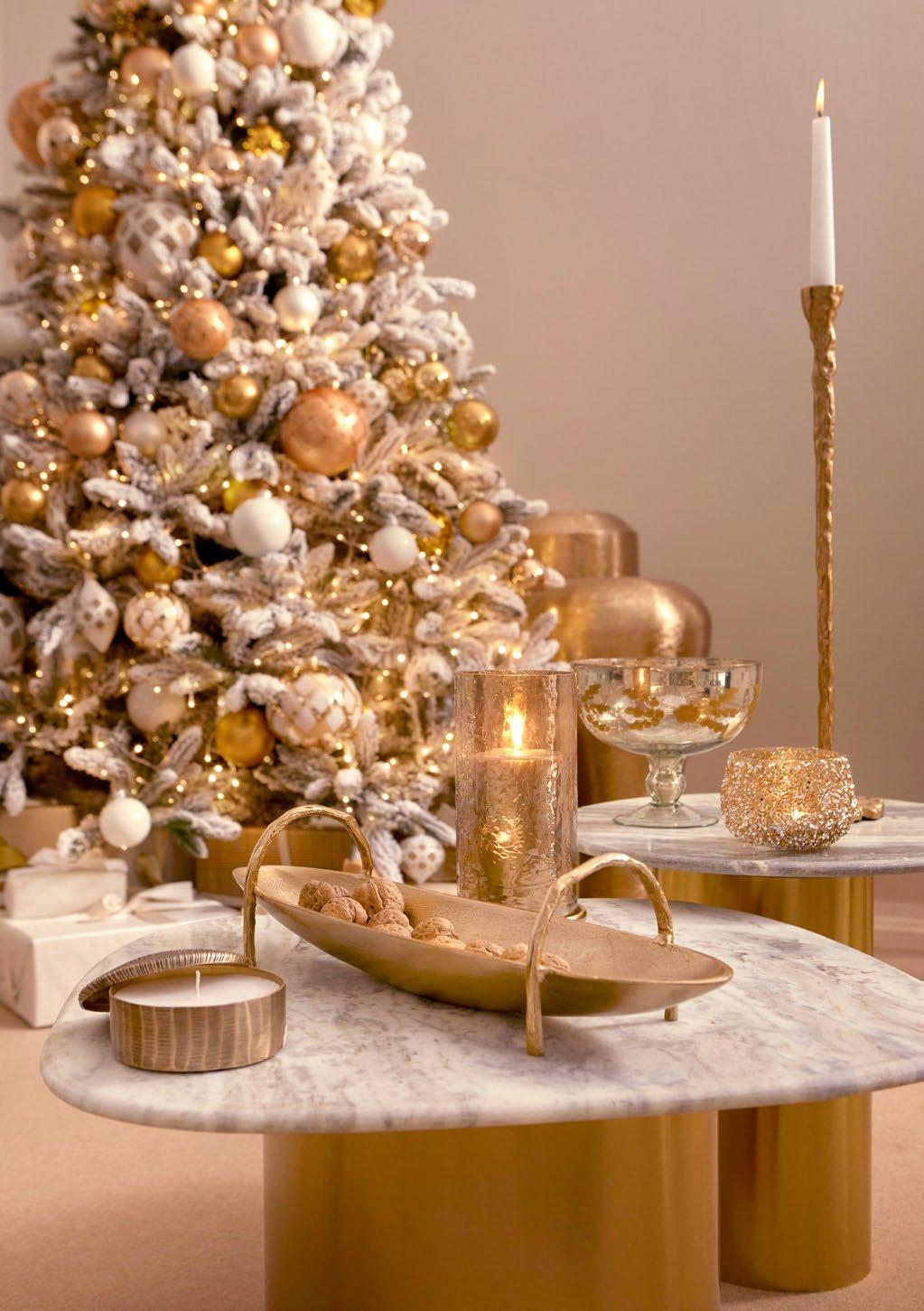 A minimalist approach that celebrates simplicity. Every detail is designed to enhance the essence of Christmas. Organic shapes blend with soft-line decorations with brass finishes, creating a fascinating contrast that invites you to explore the beauty of nature through design.