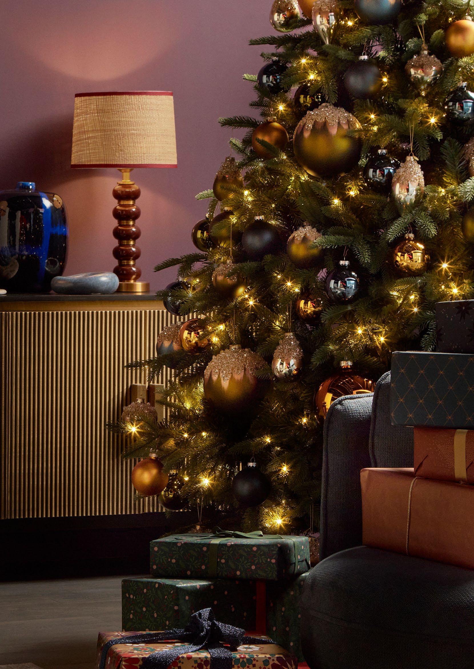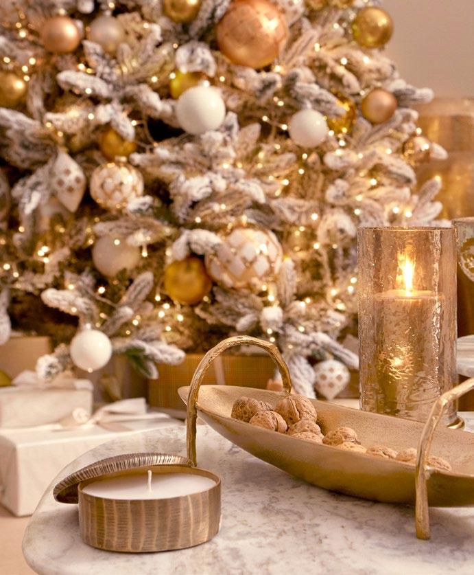 Gli alberi di Natale si arricchiscono di ornamenti dorati che brillano come tesori. ogni angolo si riempie del calore delle luci dorate creando un’atmosfera intima e festosa.