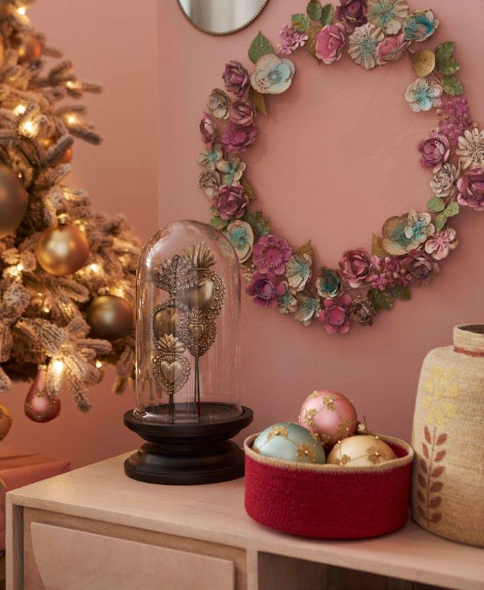 A nostalgic Christmas in which floral motifs, decorations and embroidered cushions bring with them an air of romance. The furnishings blend harmoniously with artisanal elements creating the charm of past stories. Every detail invites you to explore and admire.